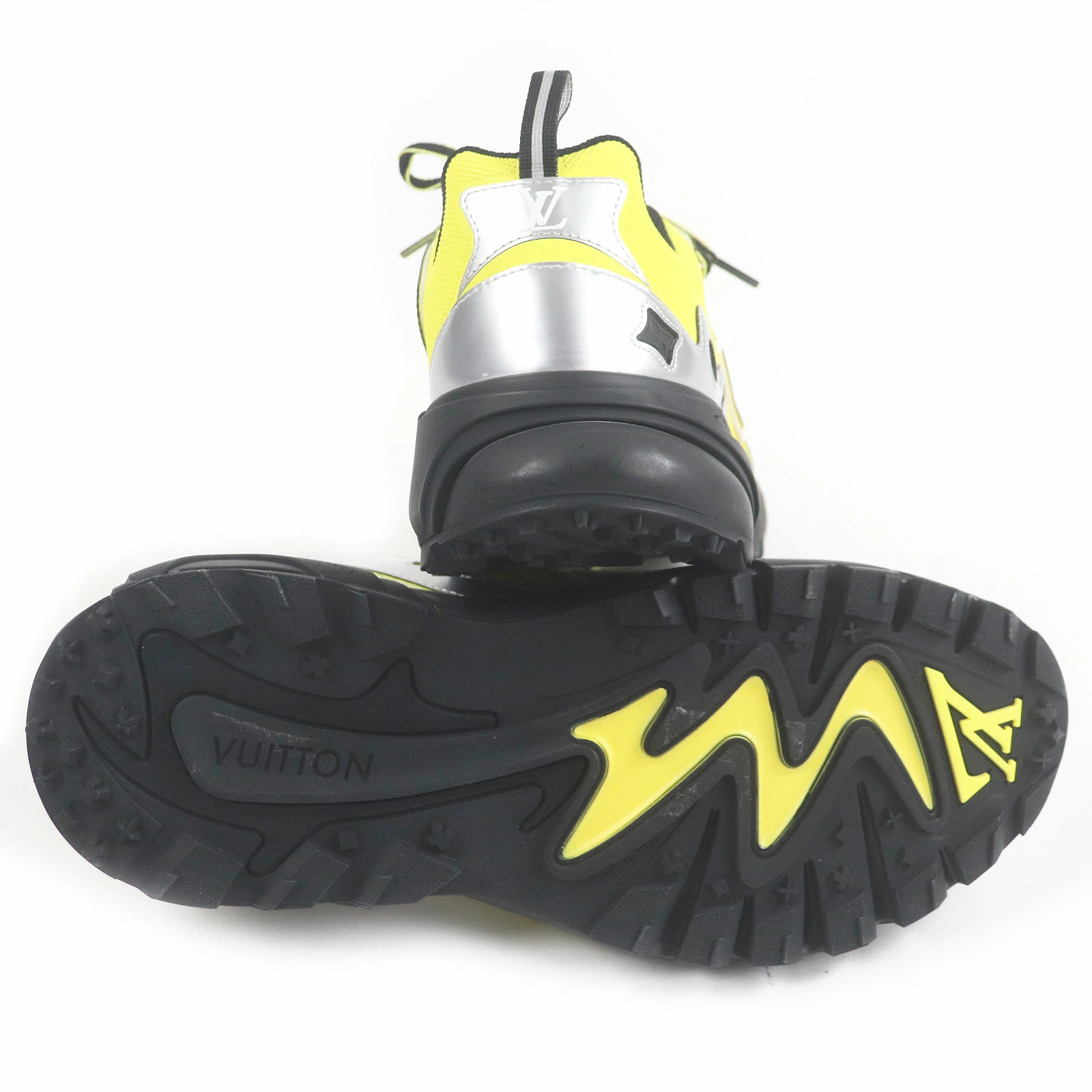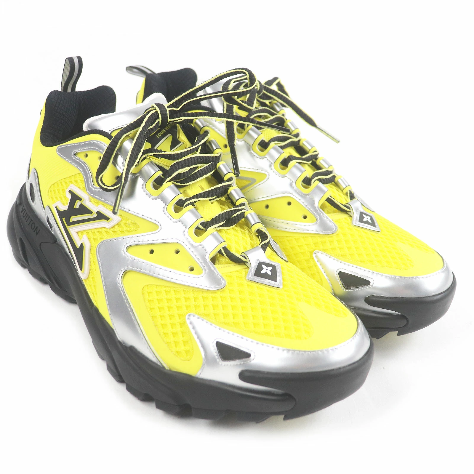 Unused LOUIS VUITTON 2022 Louis Vuitton 1AA3A8 LV Tatic Line Mesh Low-Top Sneakers, Yellow and Silver, Size 7.5, Made in Italy, Men's [Pre-owned]
