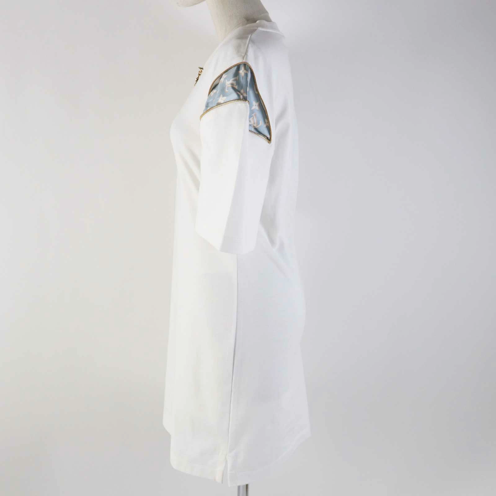 Unused Louis Vuitton 2023 Autumn/Winter 1ABRXK Zipper Sleeve T-Shirt Dress, Cotton, White/Light Blue, Gold Hardware, Size XS, Box Included, Made in Italy, Authentic, Pre-owned, Women's