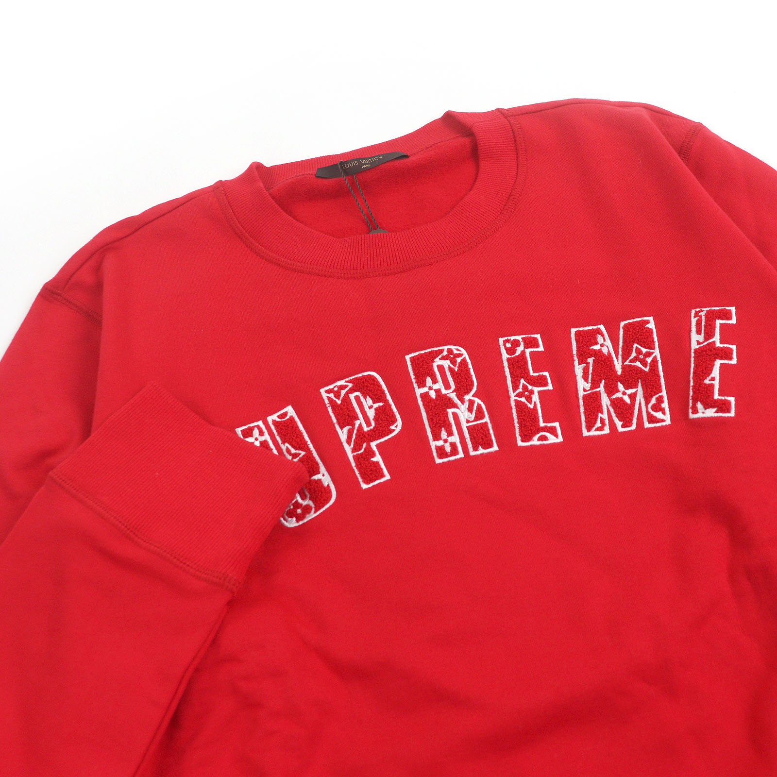 Unused LOUIS VUITTON Supreme Arch Logo Monogram Sweatshirt, Red, Size XL, Made in Italy, Authentic, Men's [Pre-owned]