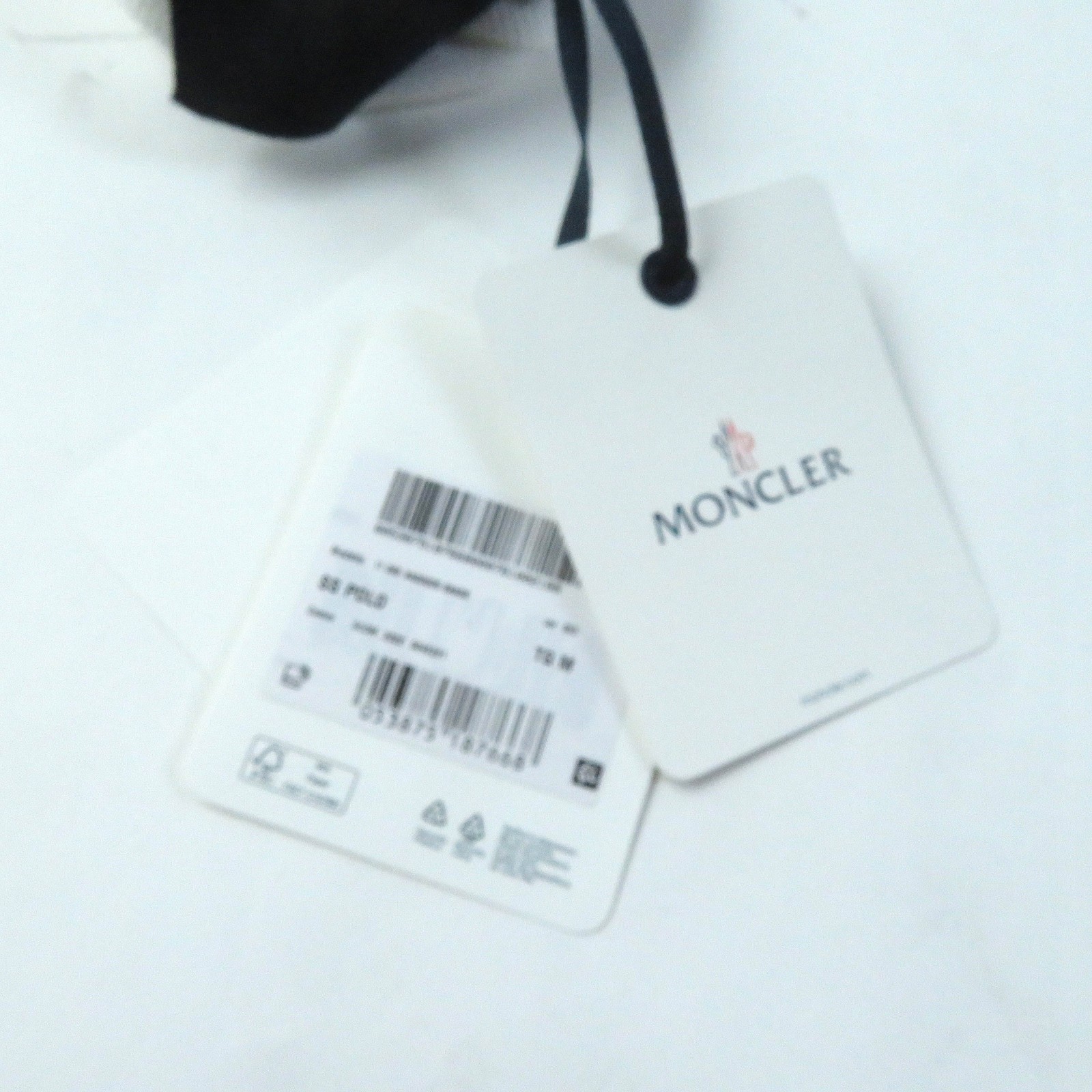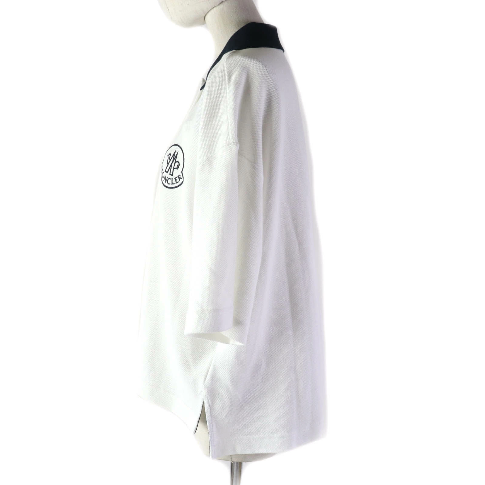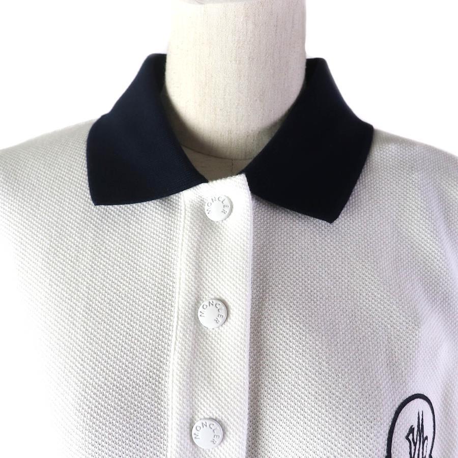 Unused MONCLER 2022 Spring/Summer POLO shirt with logo buttons and logo print. 100% cotton, oversized, short-sleeved, white and navy, size M. Authentic. Women's. Pre-owned.