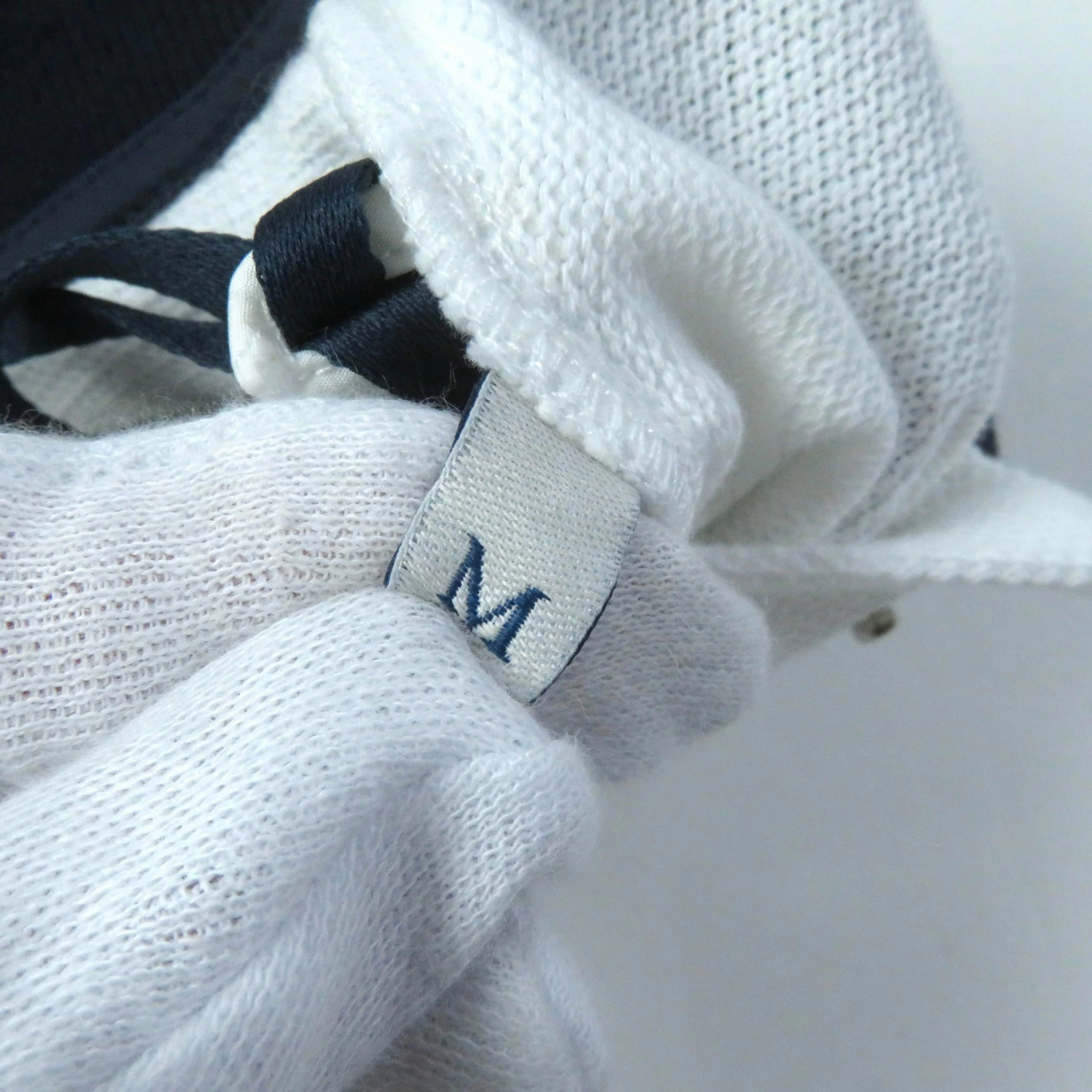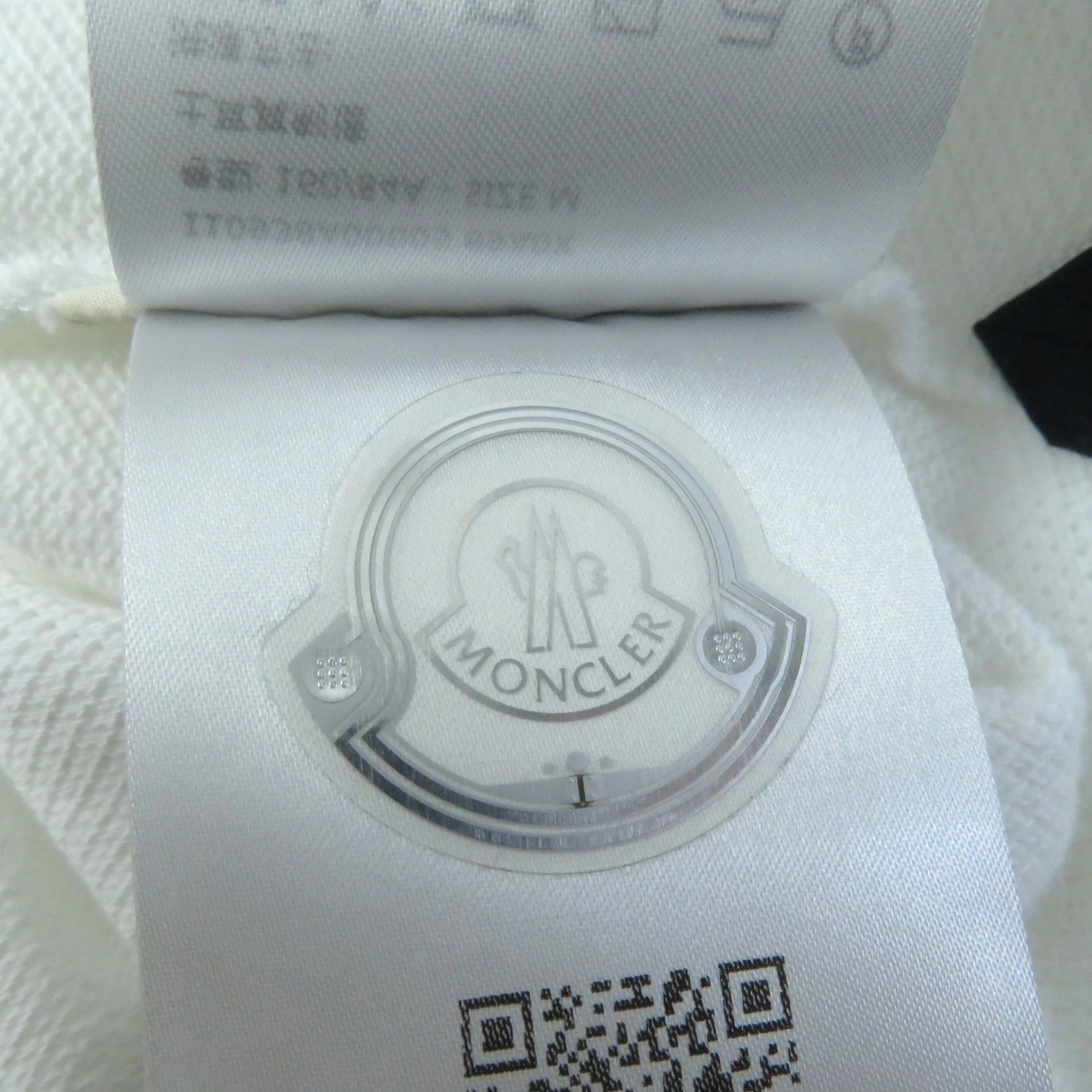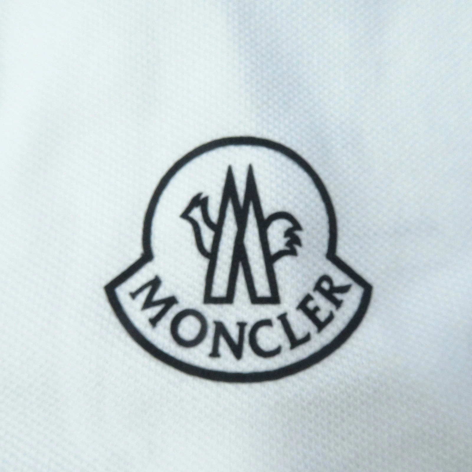 Unused MONCLER 2022 Spring/Summer POLO shirt with logo buttons and logo print. 100% cotton, oversized, short-sleeved, white and navy, size M. Authentic. Women's. Pre-owned.