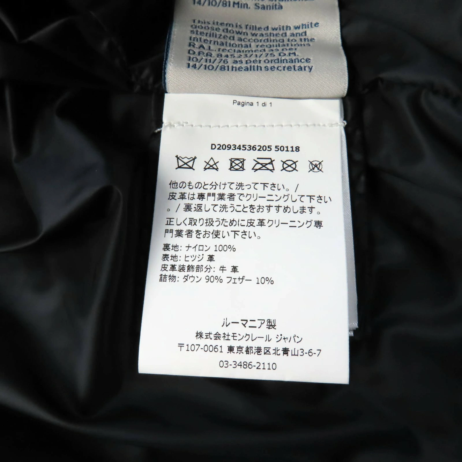 | 素材 (material) | 裏地:ナイロン100% 表地:ラムレザー 一部:レザー 中綿:ダウン90% :フェザー10% | ||||||||||||||||