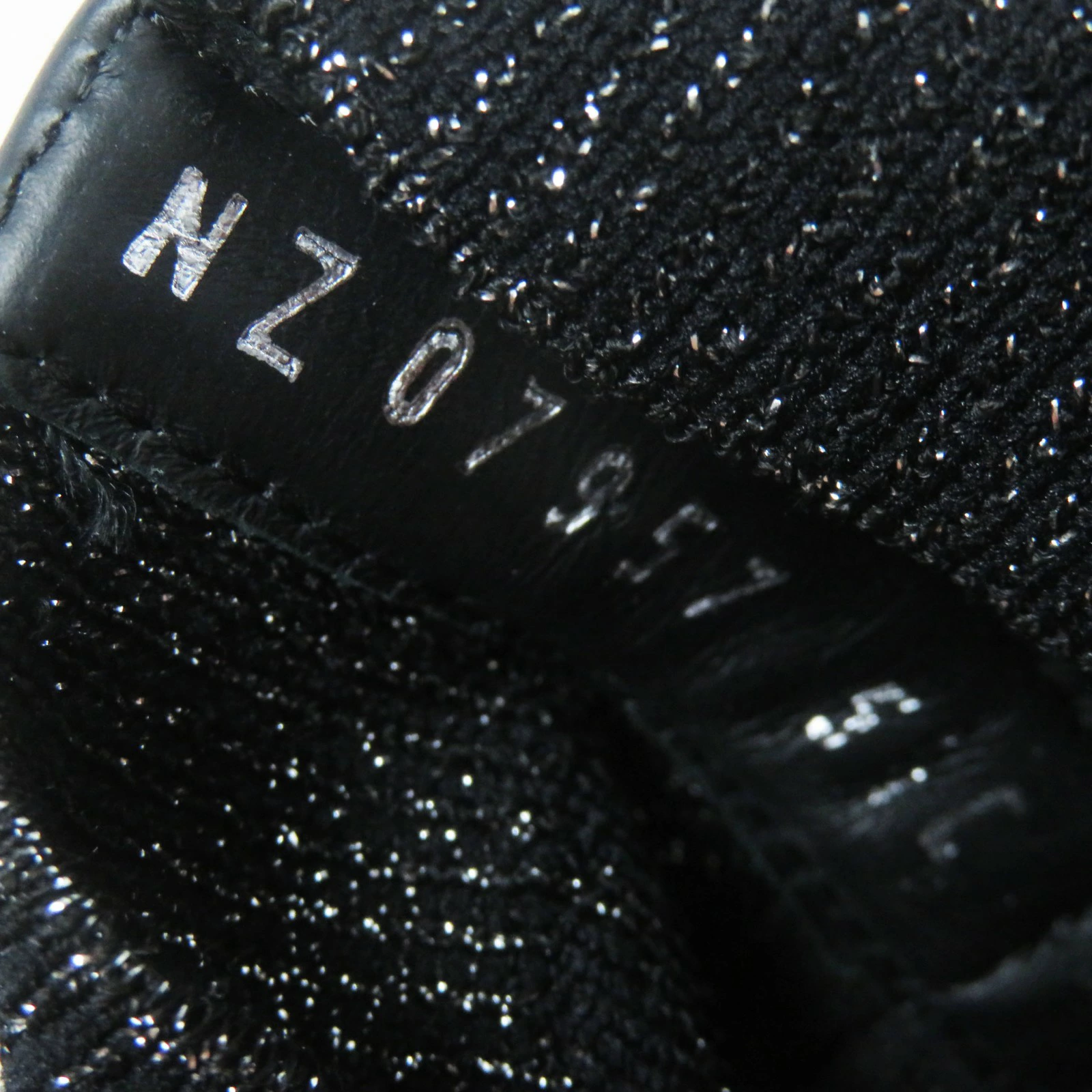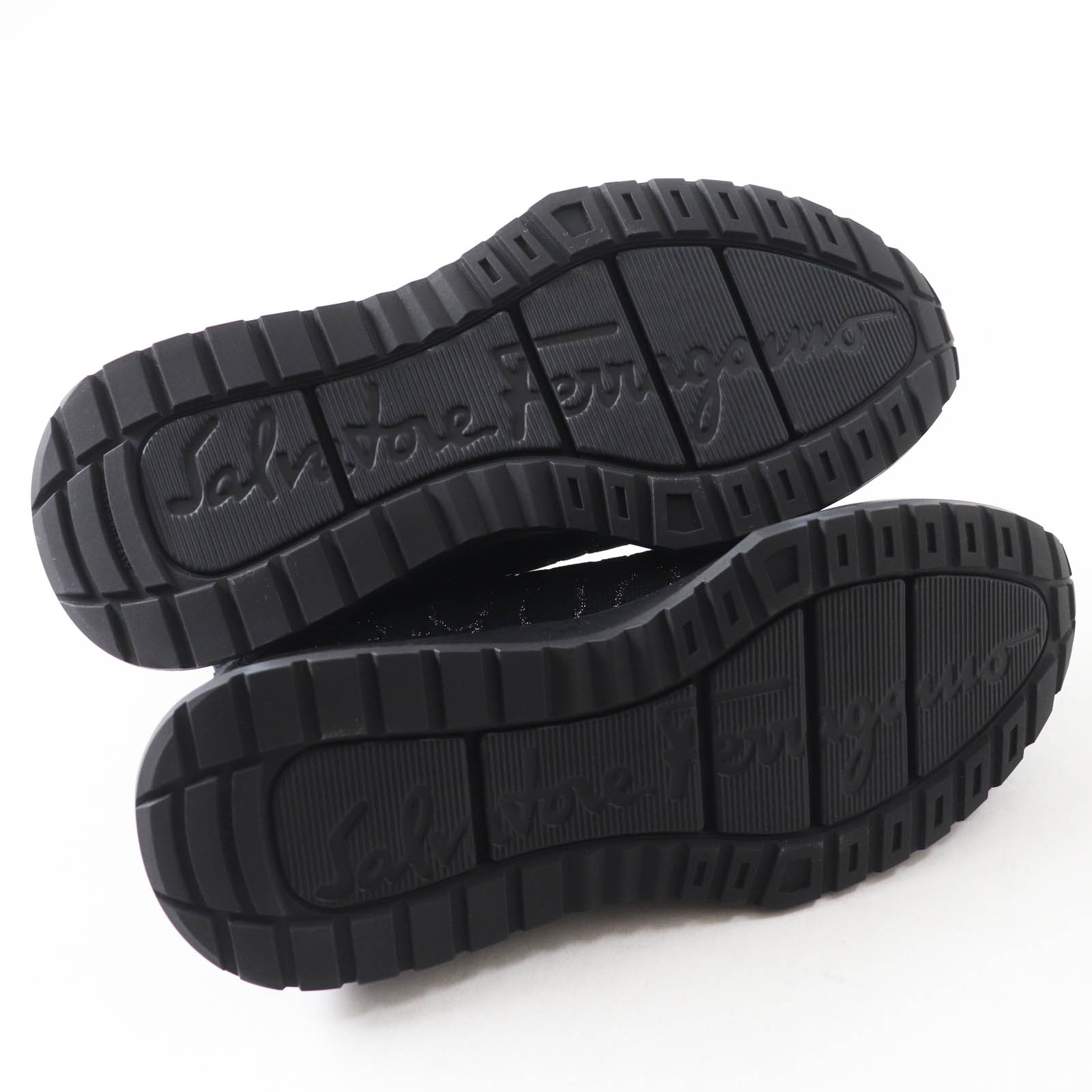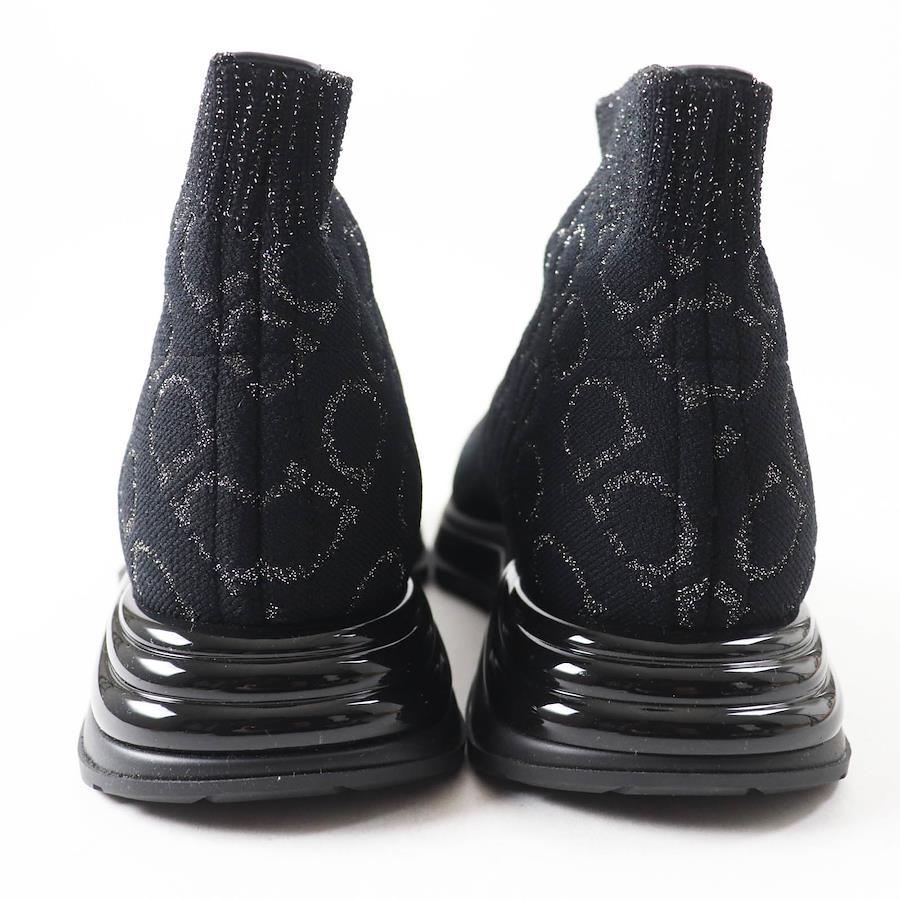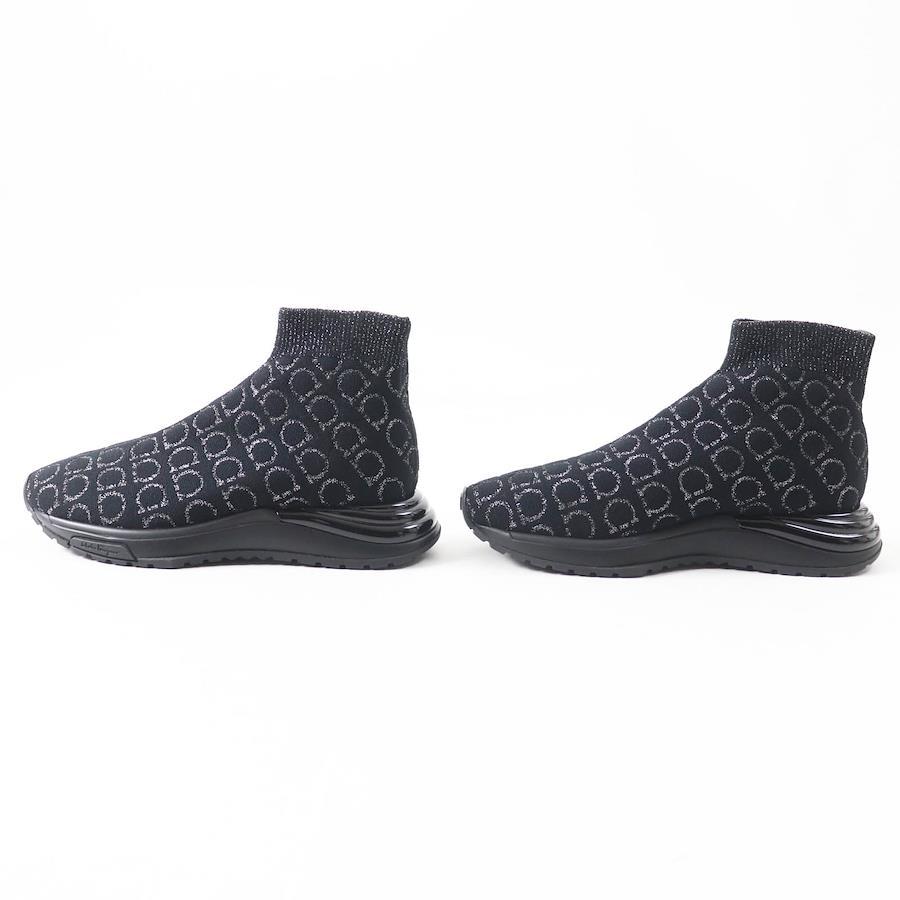Unused Salvatore Ferragamo Gancini all-over knit sock sneakers, black and silver, size 5.5, with dust bag, made in Italy. Pre-owned.