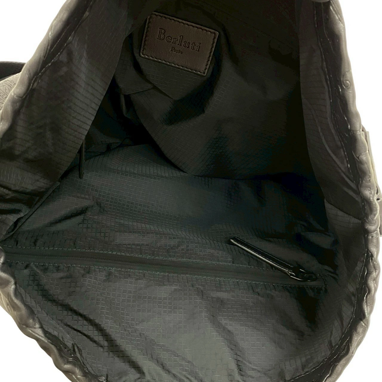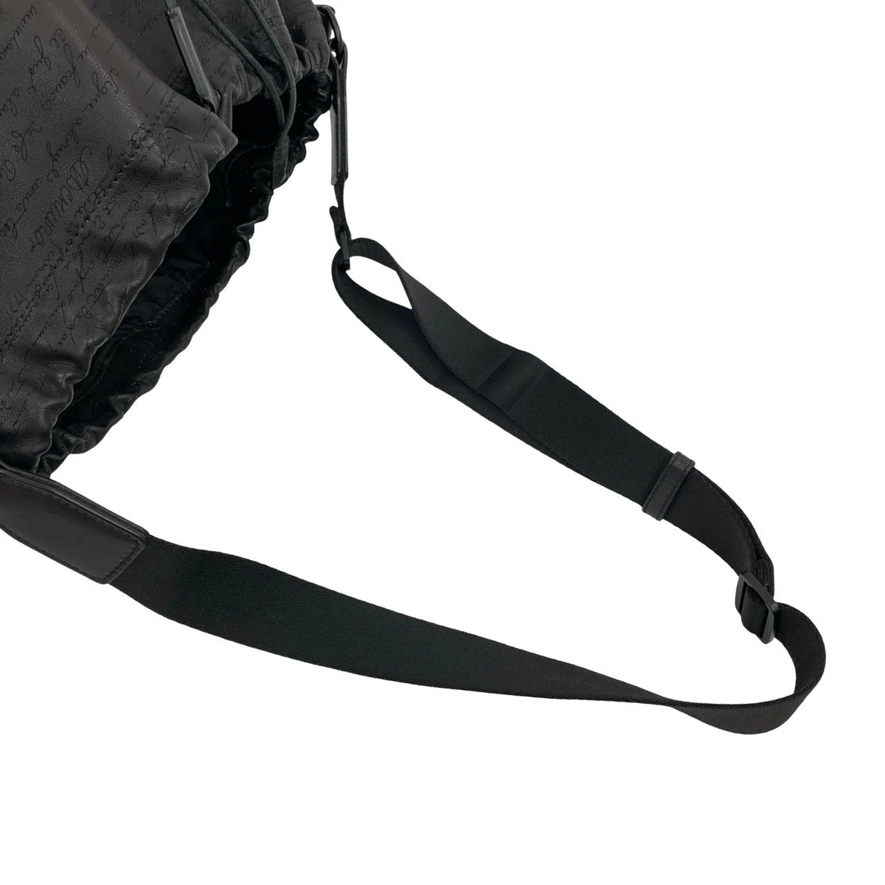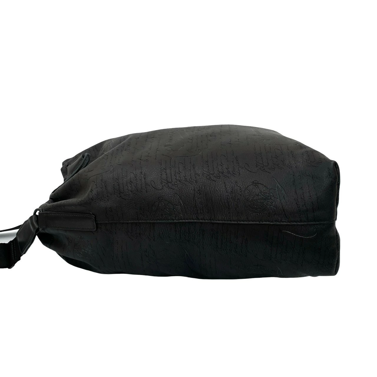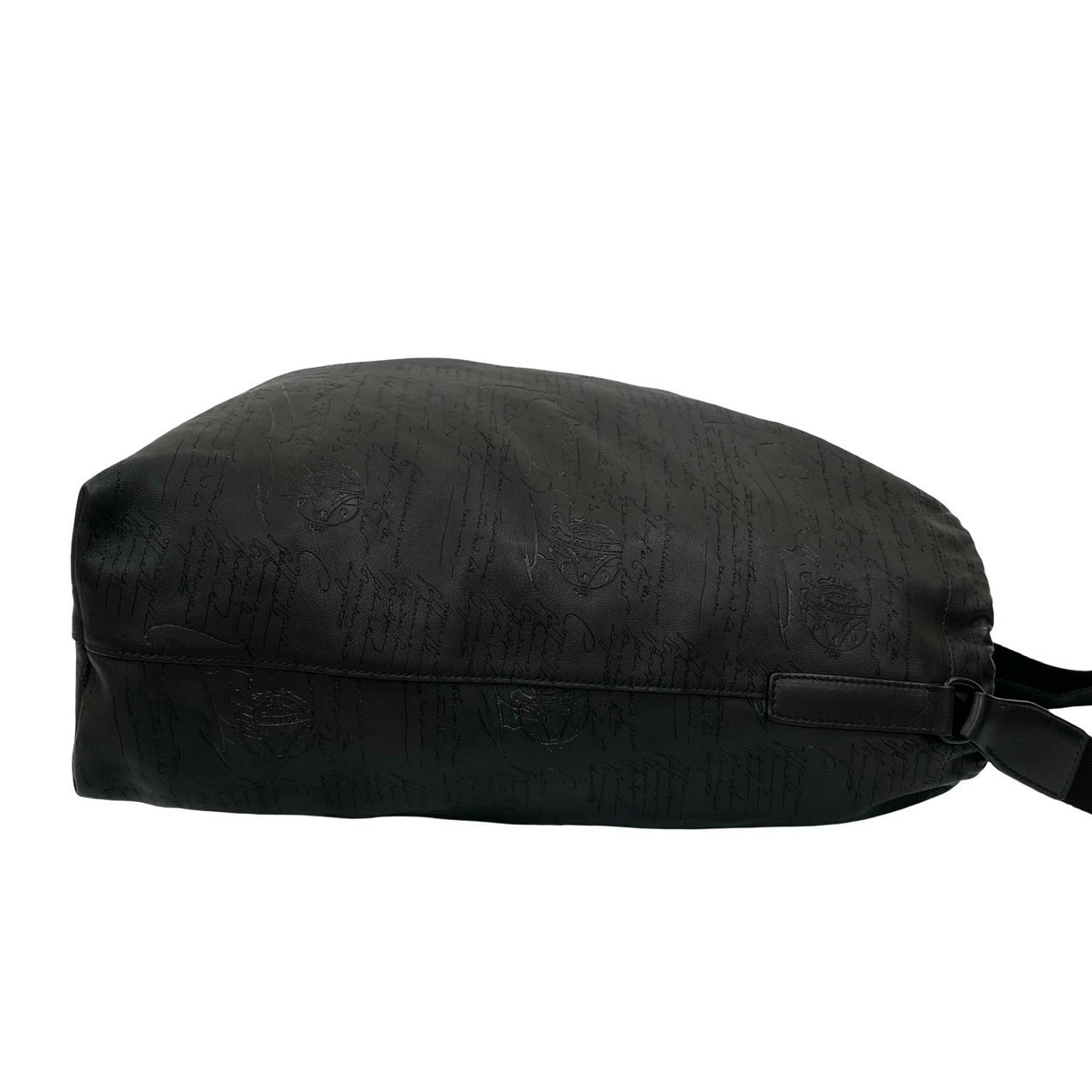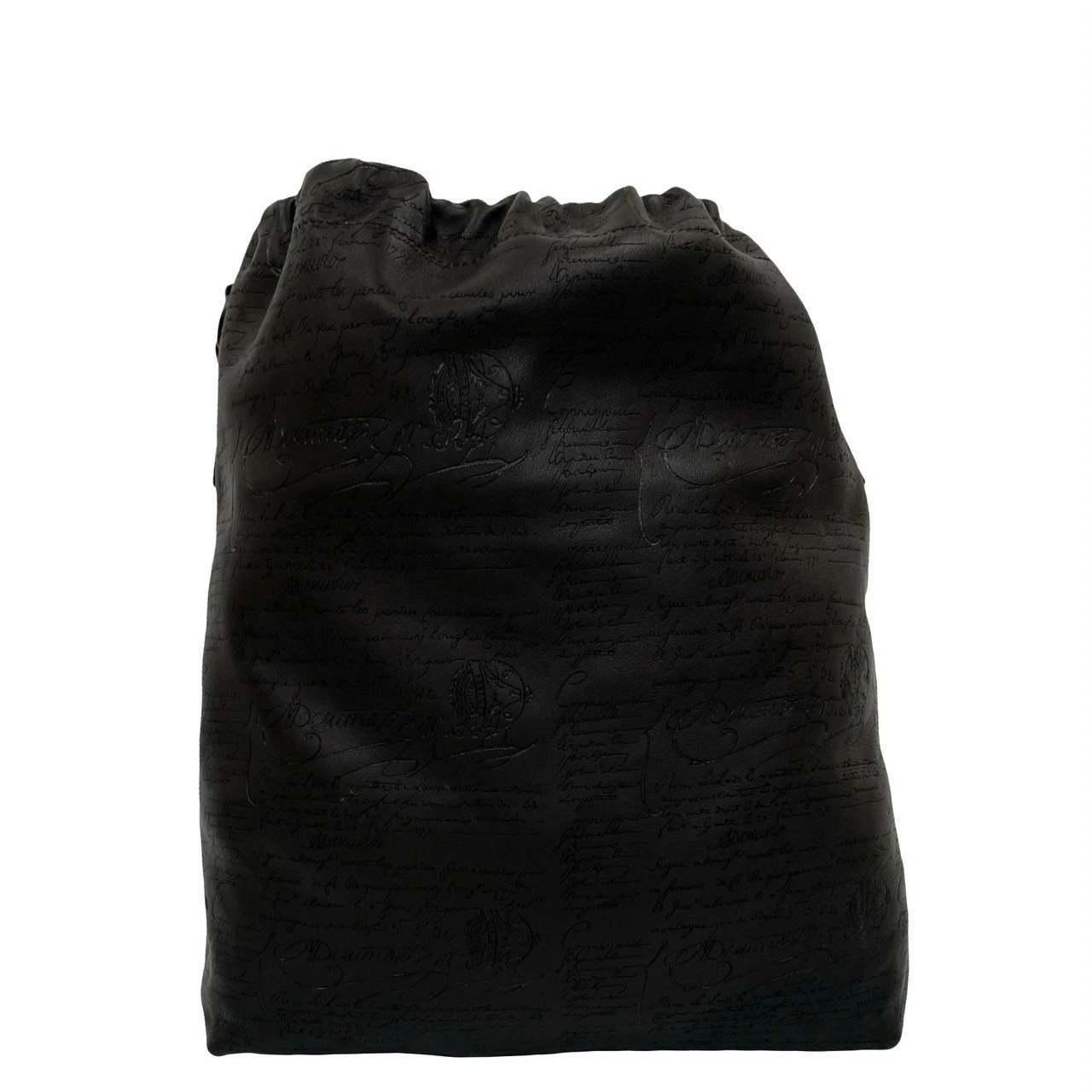 Unused, stored, rare Berluti Calligraphy Duffle Bag from the Runway Collection, black leather drawstring shoulder bag, model 36450 [Pre-owned]