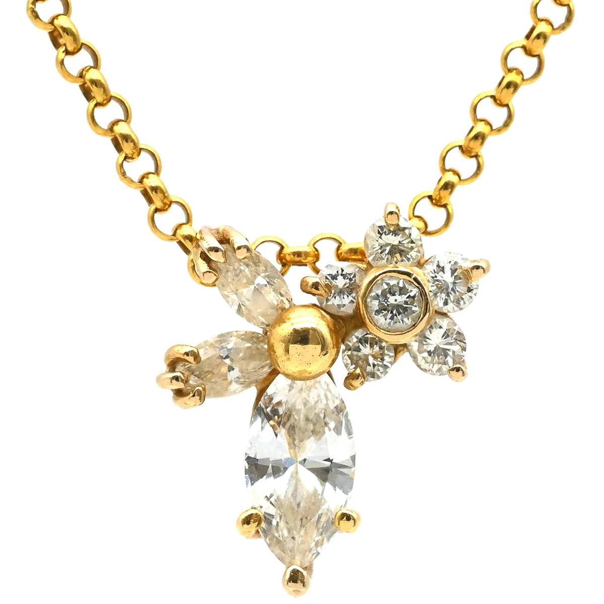 ノンブランド NON BRAND ネックレス ダイヤペンダント K18YG ダイヤモンド イエローゴールド 750 18K フラワーモチーフ レディース定番 人気 美品 【中古】