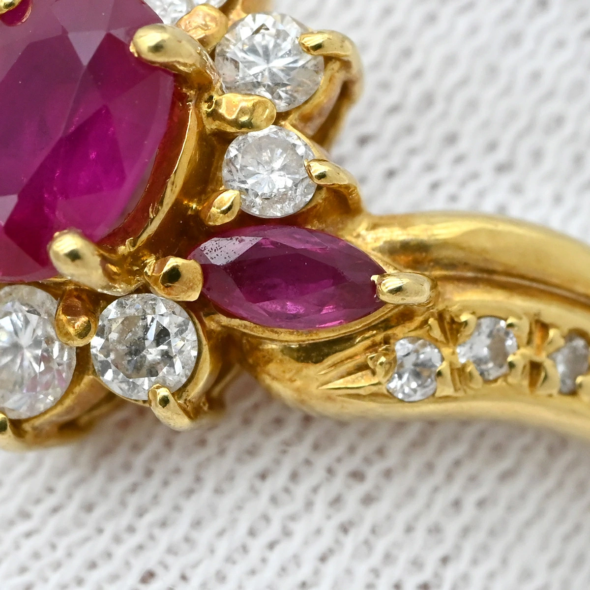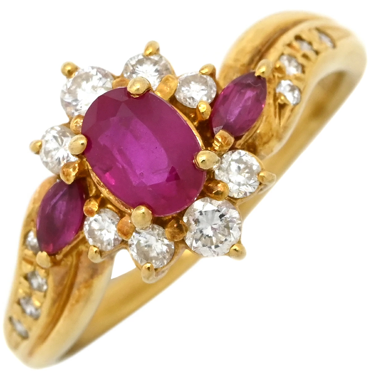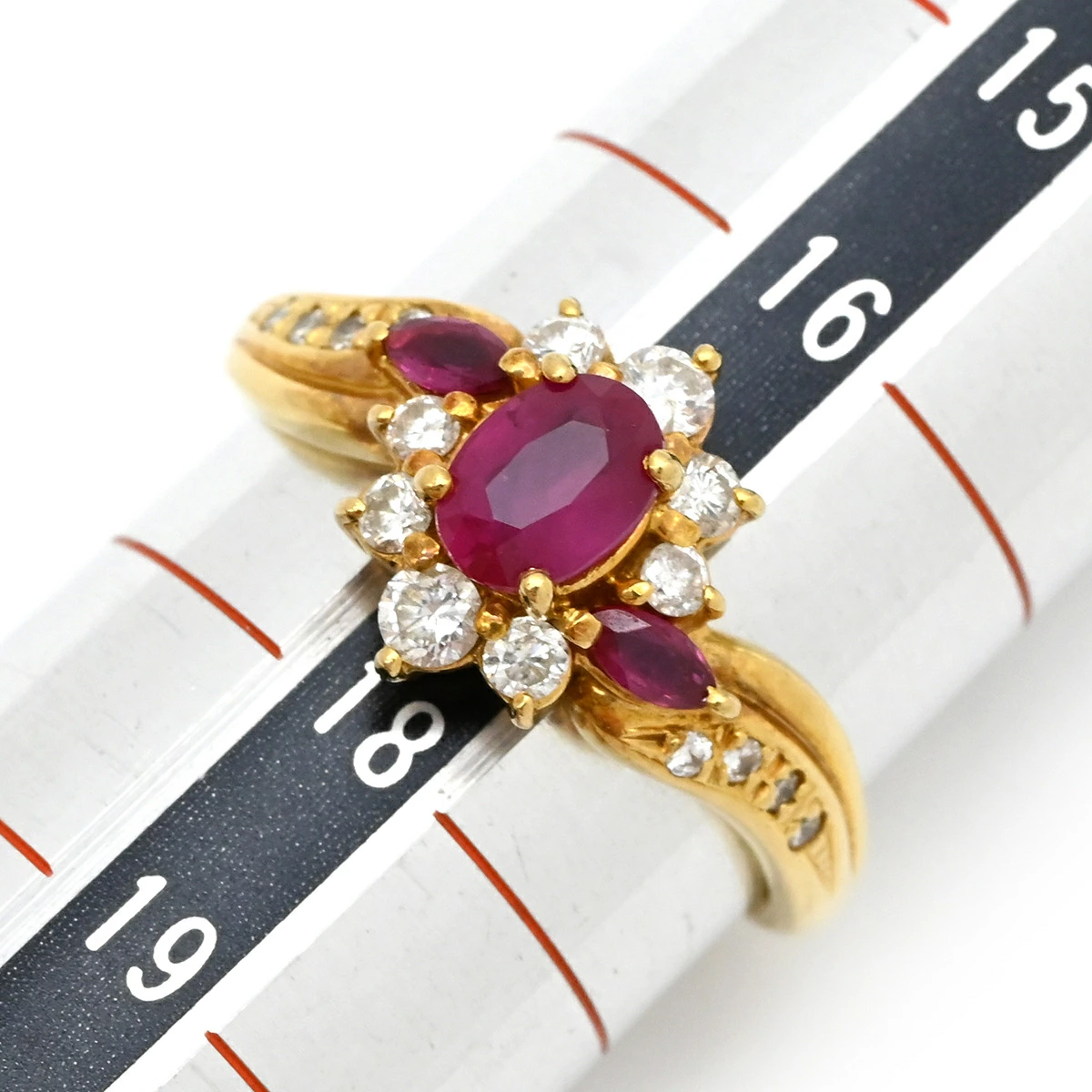 ノンブランド NON BRAND リング 指輪 ルビー ダイヤ リング K18YG ルビー ダイヤモンド イエローゴールド Au750 18K 18金 レッド 赤 - 17号 メンズ 【中古】