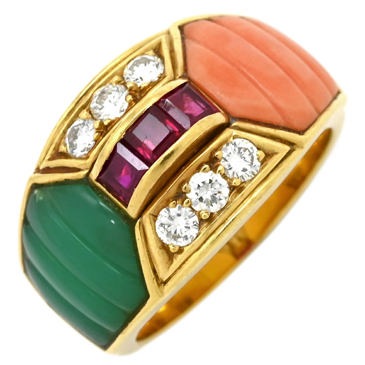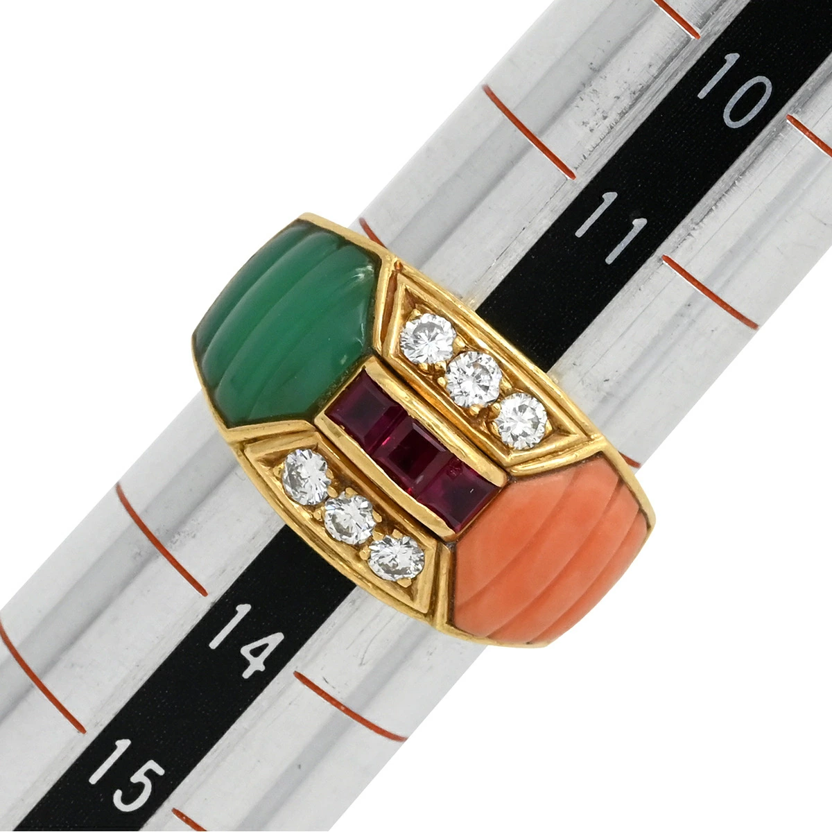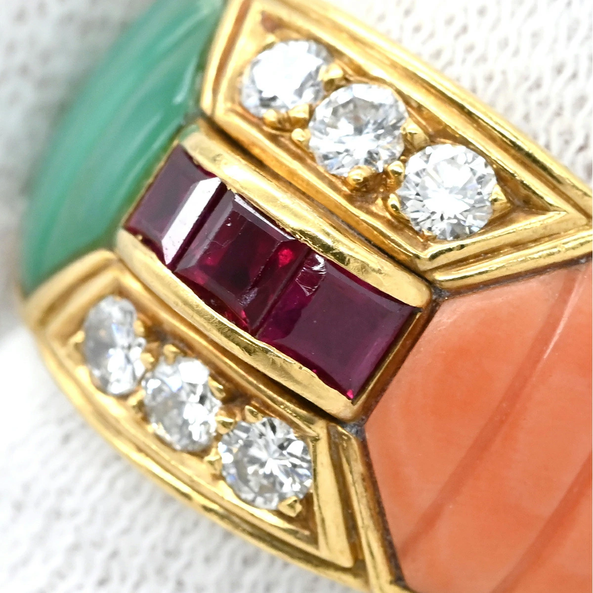 ノンブランド NON BRAND リング 指輪 ルビー 珊瑚 ダイヤ リング K18YG ルビー 珊瑚 カルセドニー ダイヤモンド イエローゴールド Au750 18K 18金 赤 緑 ピンク - 12.5号 レディース 【中古】