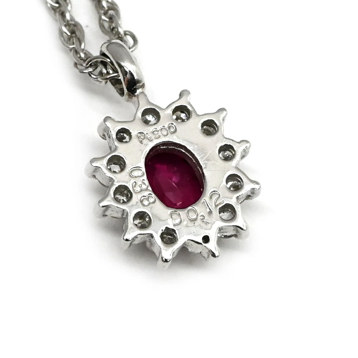 ノンブランド NON BRAND ネックレス ルビー ダイヤペンダント Pt900 ルビー ダイヤモンド Pt850(チェーン) プラチナシルバー 赤 - レディース定番 人気 美品 【中古】