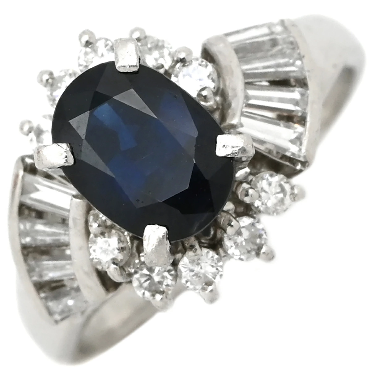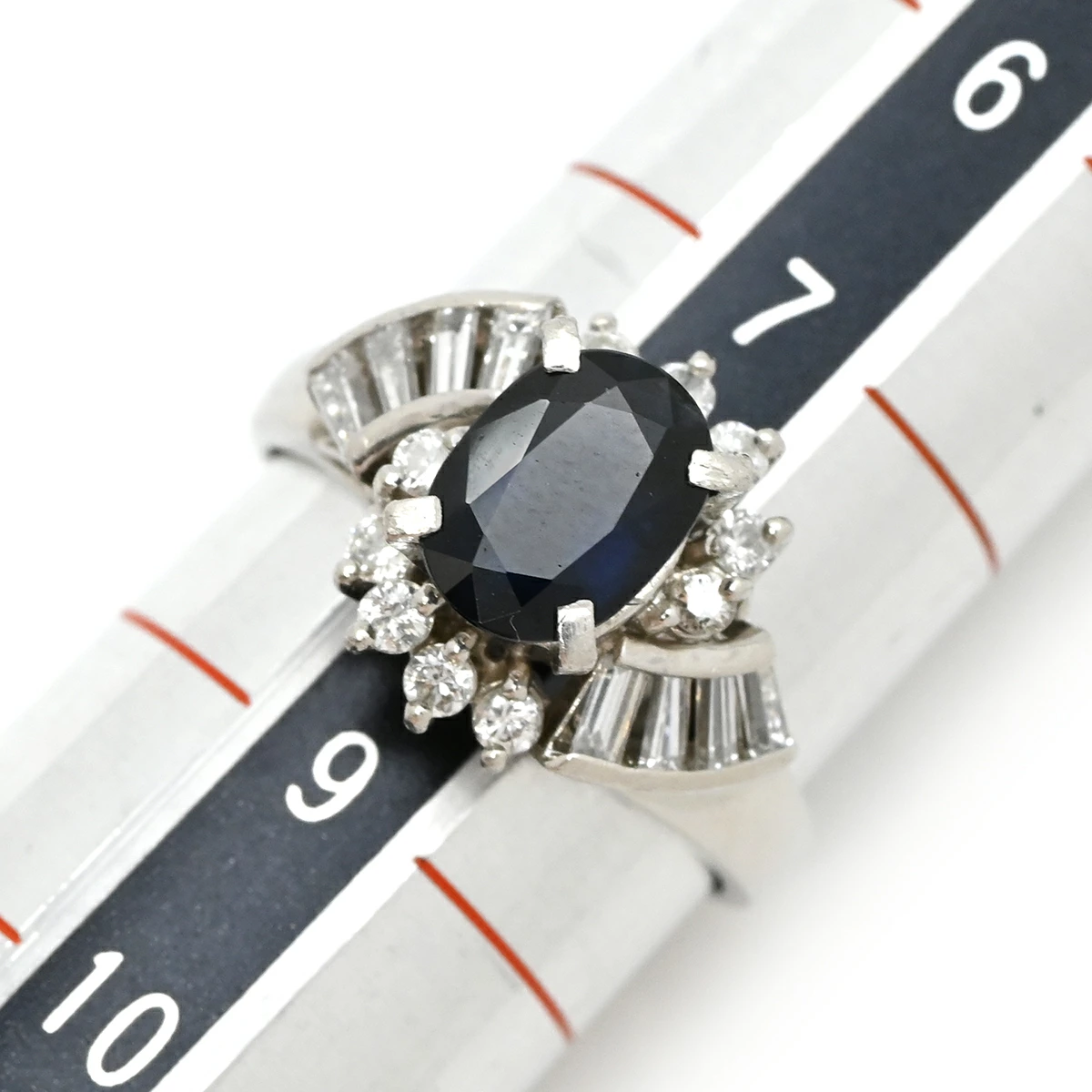 ノンブランド NON BRAND リング 指輪 ブルーサファイア ダイヤリング Pt900 サファイア ダイヤモンド プラチナシルバー 青 イニシャル入り 8号 レディース 【中古】