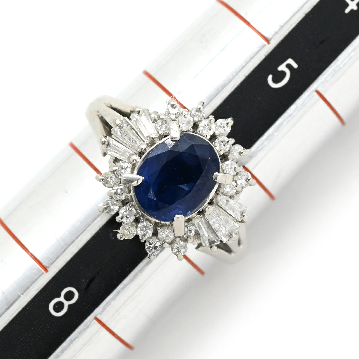 Up to ¥40,000 discount coupon (limited quantity) / Blue sapphire and diamond ring in platinum and silver (Pt900), size 6.5 (pre-owned)