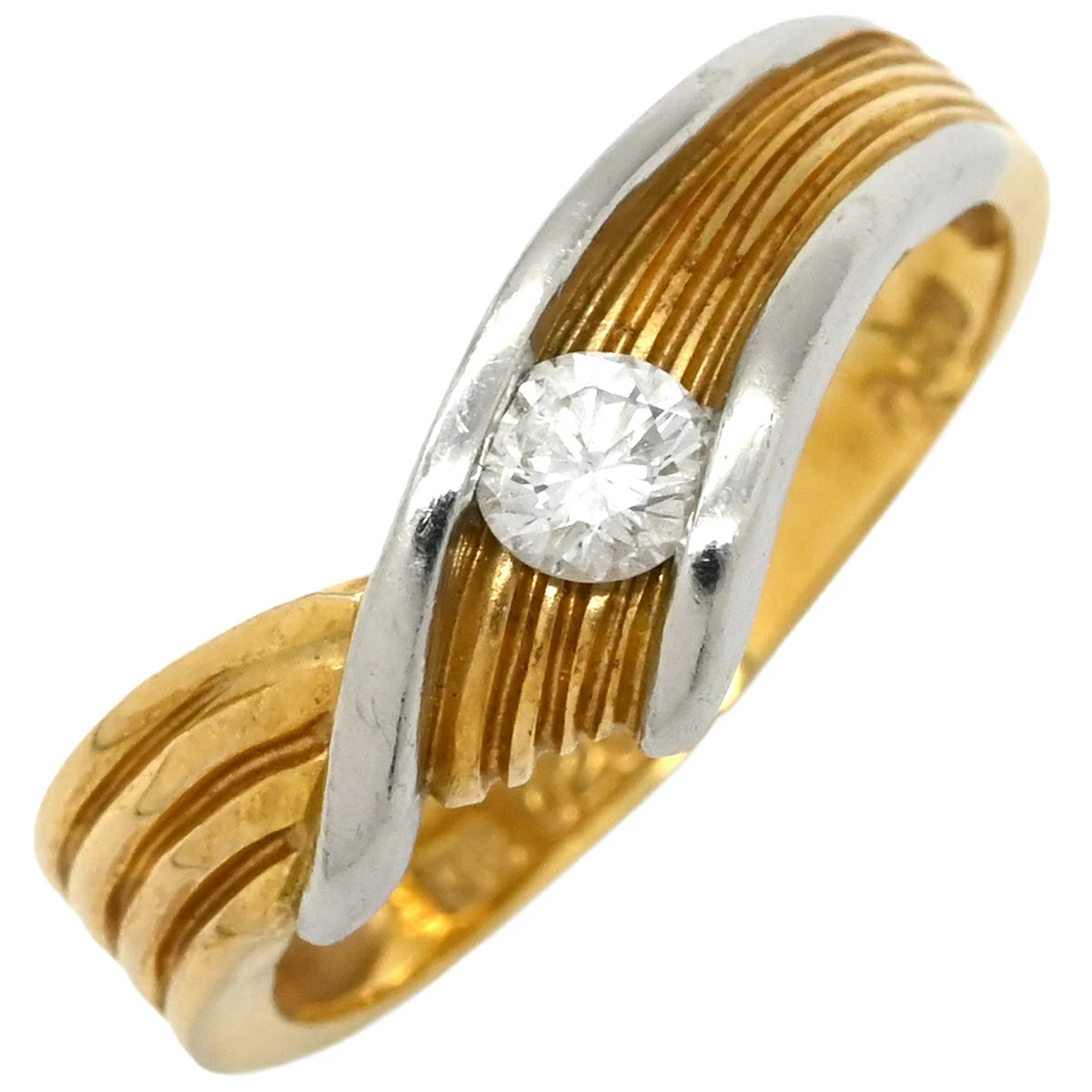ノンブランド NON BRAND リング 指輪 ダイヤ コンビリング K18YG Pt900 ダイヤモンド イエローゴールドXプラチナシルバー 1P 1粒ダイヤ 12号 レディース 【中古】