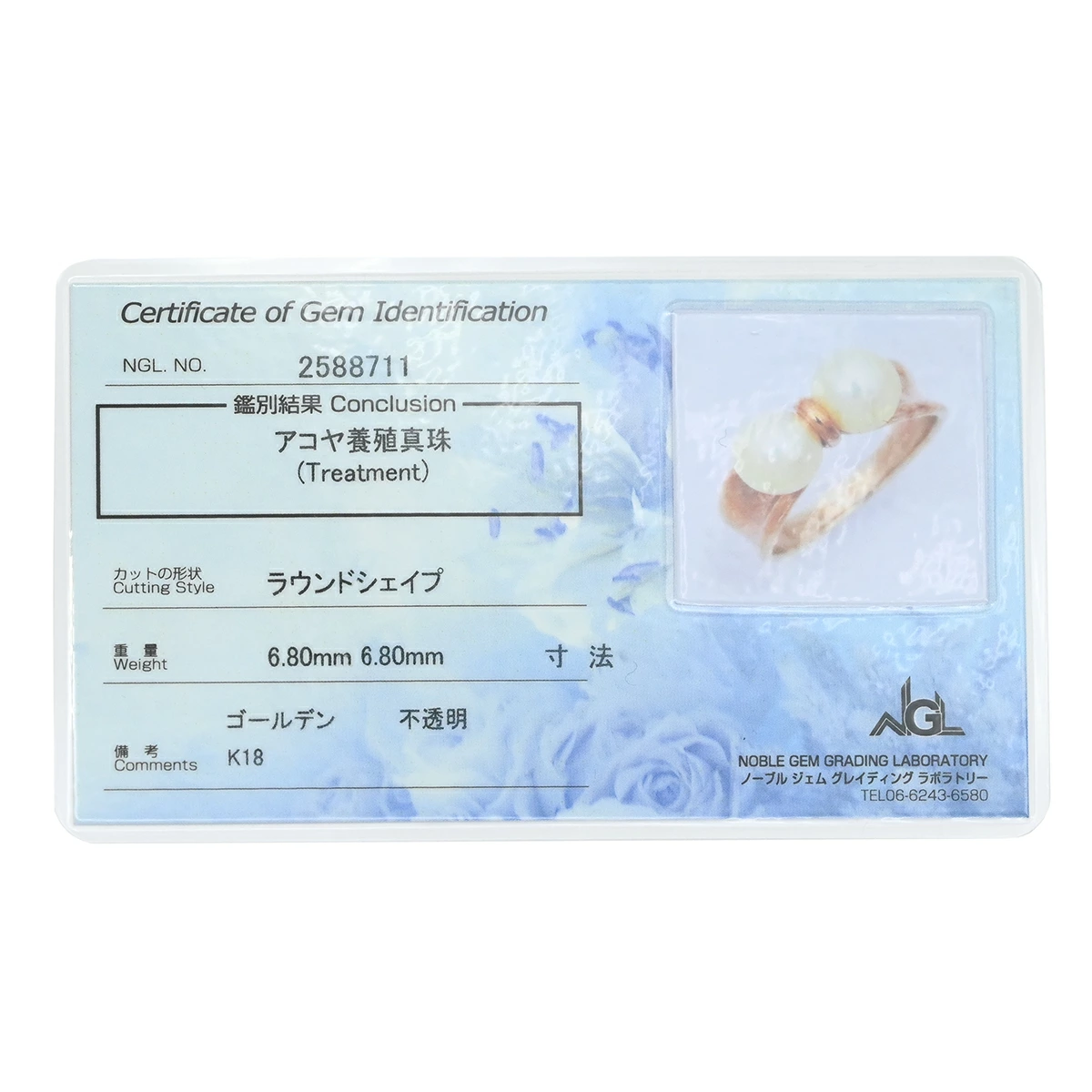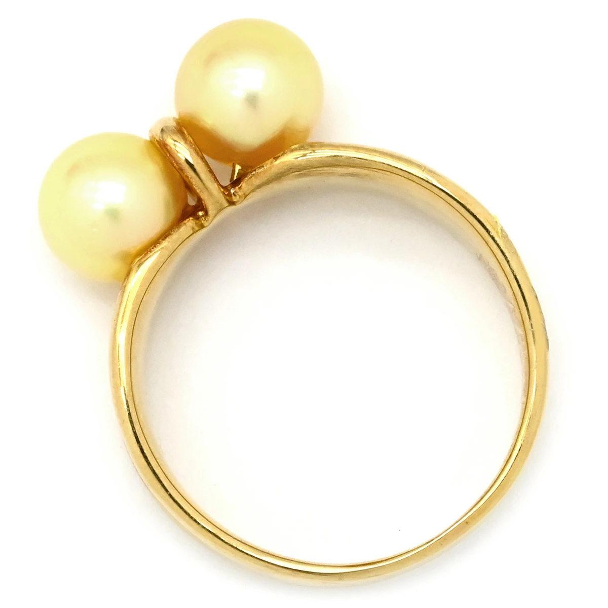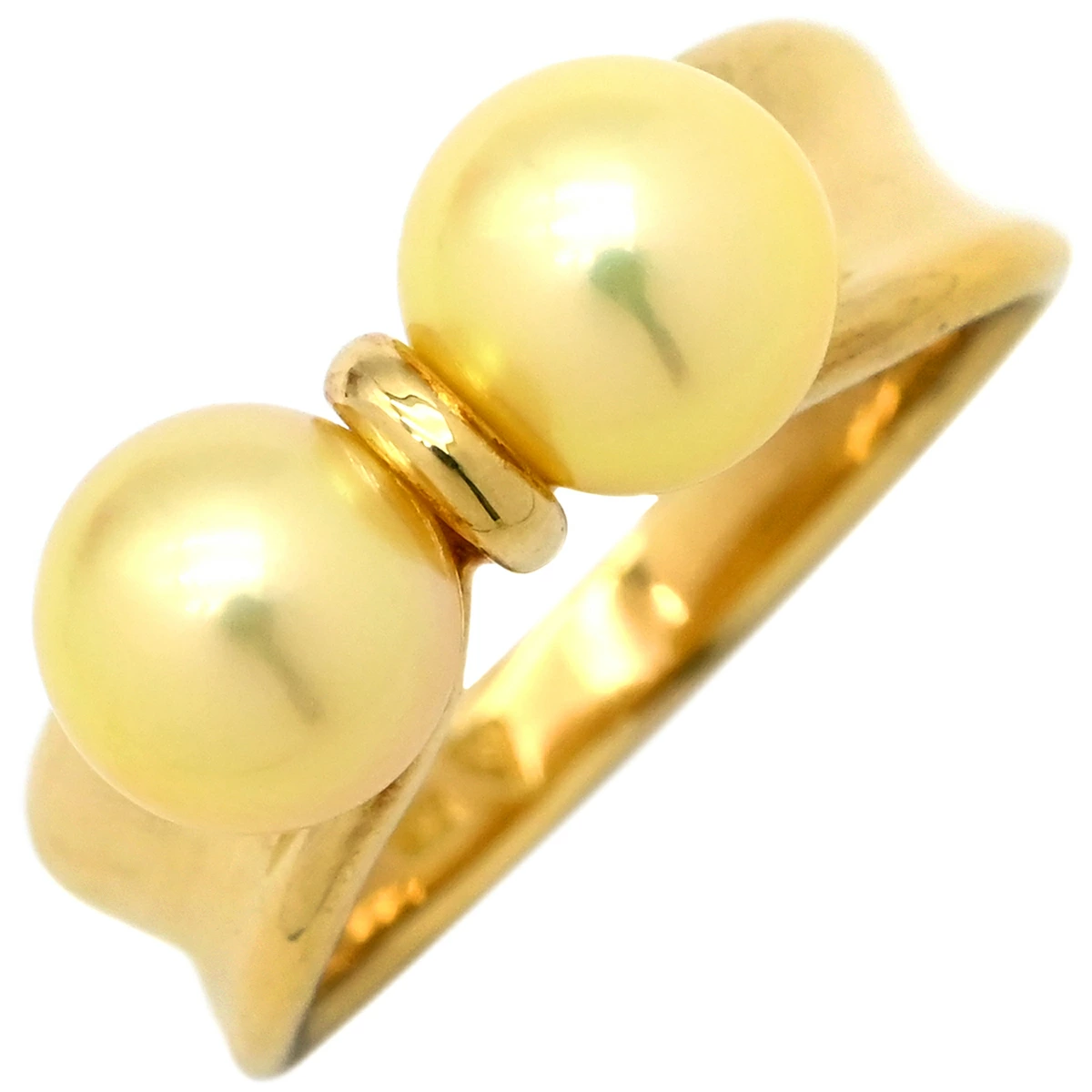 ノンブランド NON BRAND リング 指輪 ゴールデンパール リング K18YG あこやパール イエローゴールド あこやパール 2粒 2P 750 YG 金 13号 レディース定番 人気 美品 【中古】