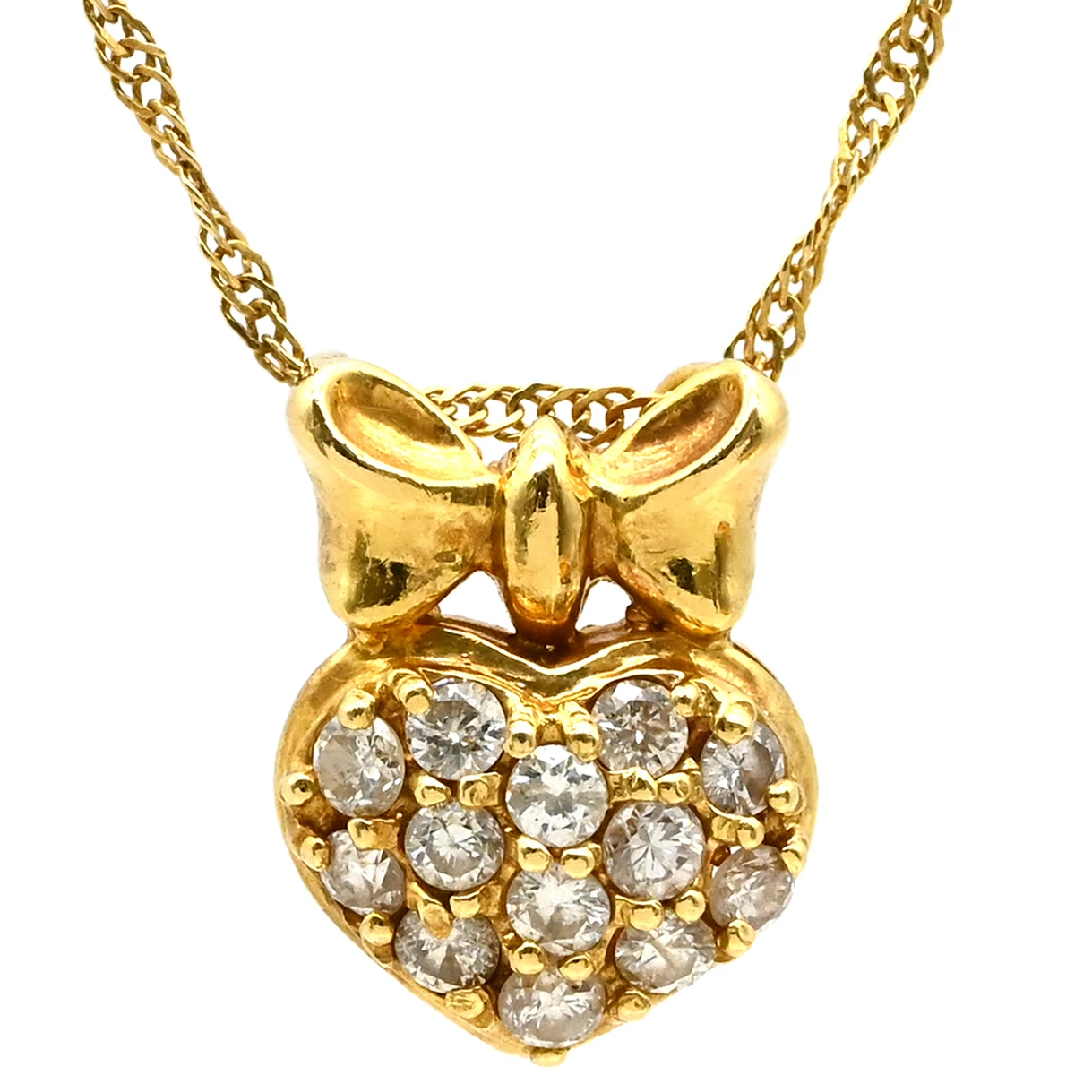 ノンブランド NON BRAND ネックレス ハート リボン ダイヤペンダント K18YG ダイヤモンド イエローゴールド 750 18K レディース定番 人気 美品 【中古】