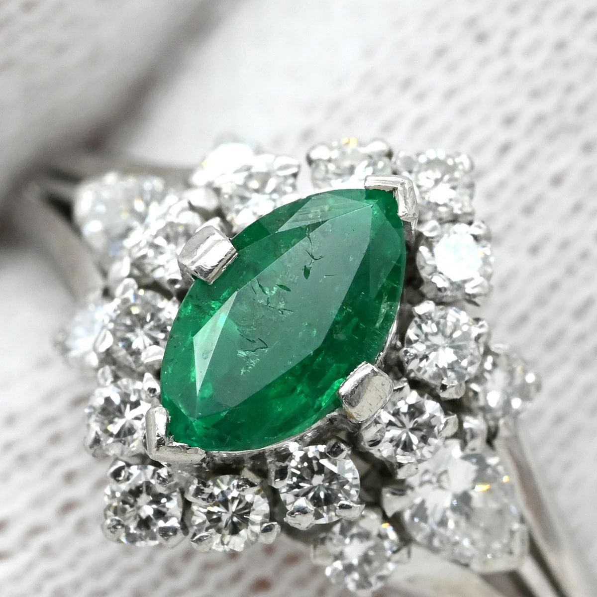 ノンブランド NON BRAND リング 指輪 エメラルド ダイヤ リング Pt900 エメラルド ダイヤモンド プラチナシルバー グリーン 緑 マーキスカット PM900 - 11号 レディース 【中古】