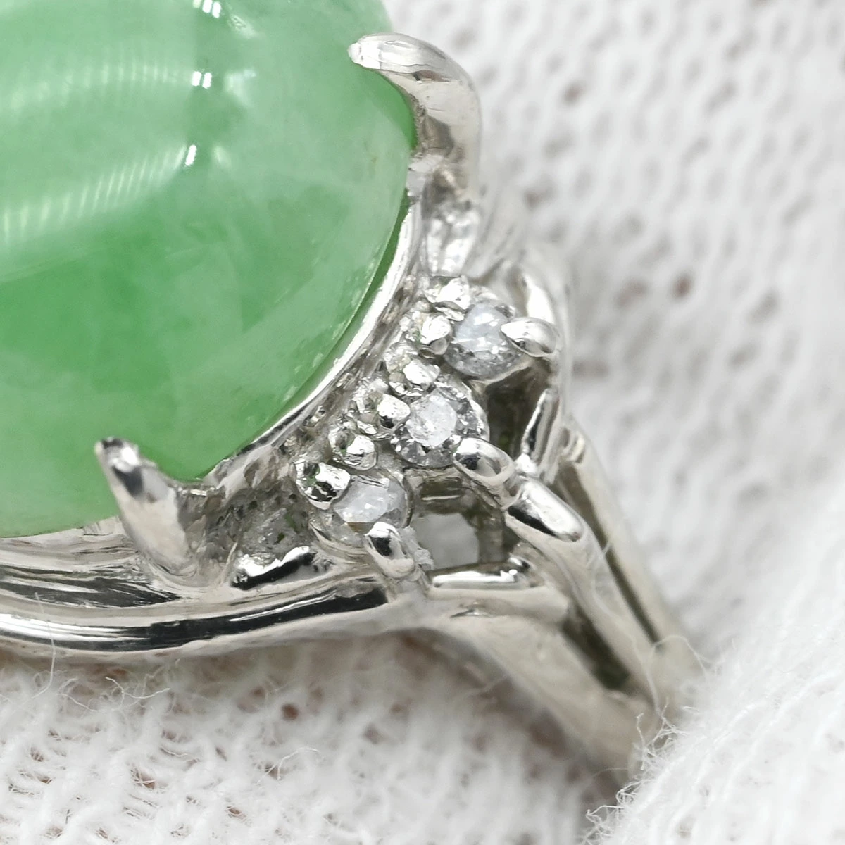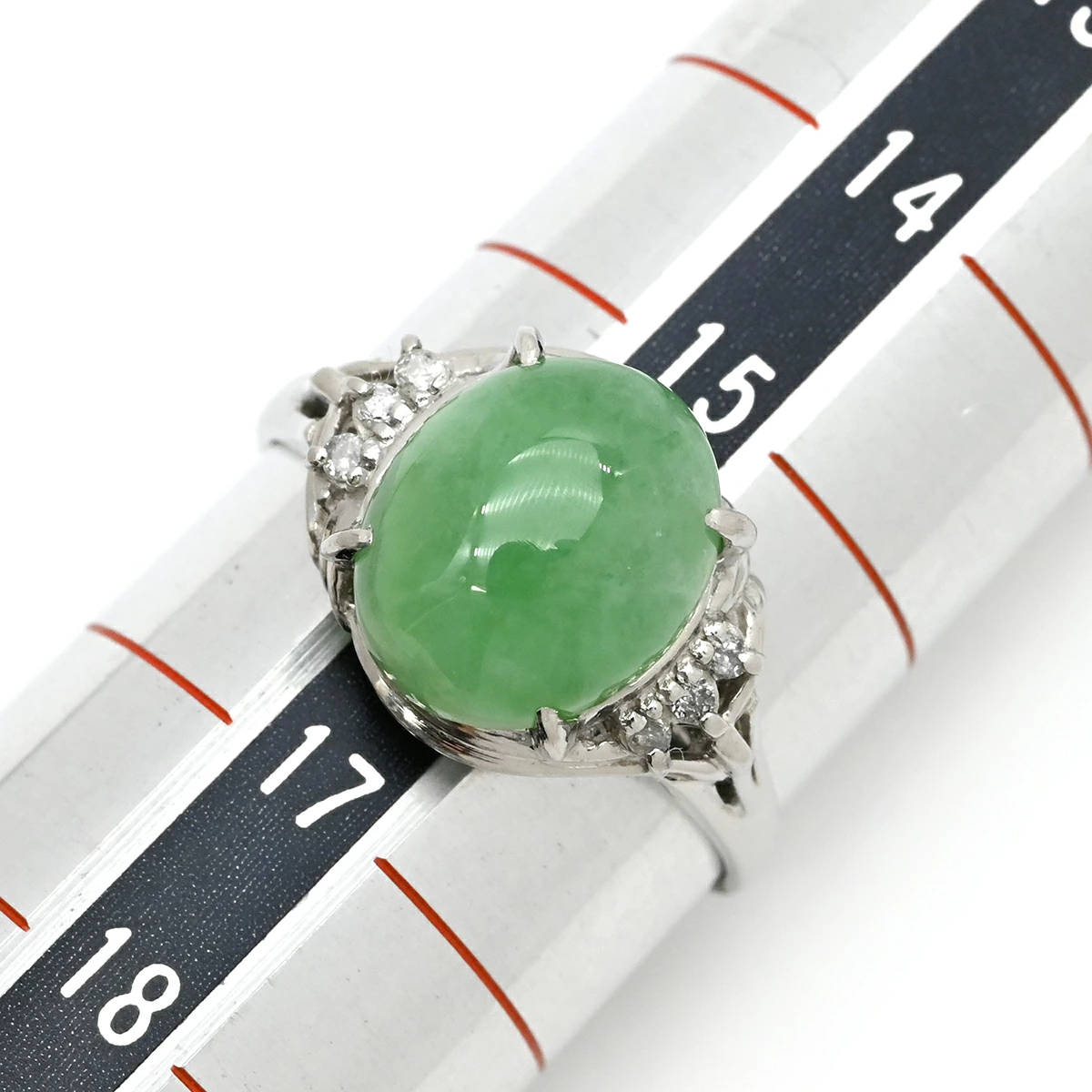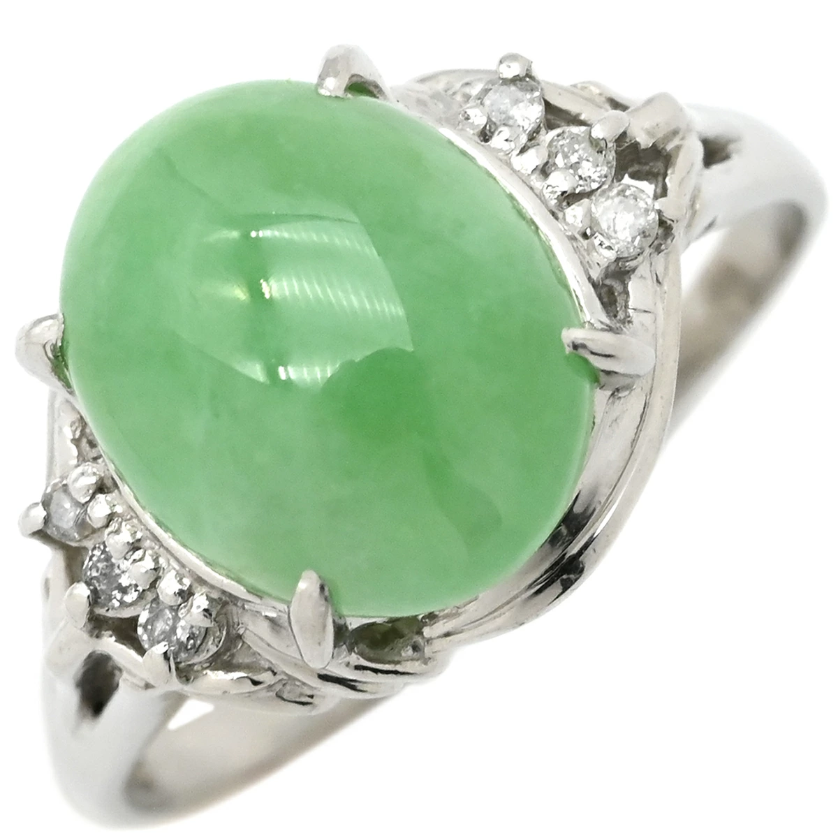 ノンブランド NON BRAND リング 指輪 ヒスイ ダイヤリング Pt900 ヒスイ ダイヤモンド プラチナシルバー 翡翠 16号 メンズ レディース ユニセックス定番 人気 美品 【中古】