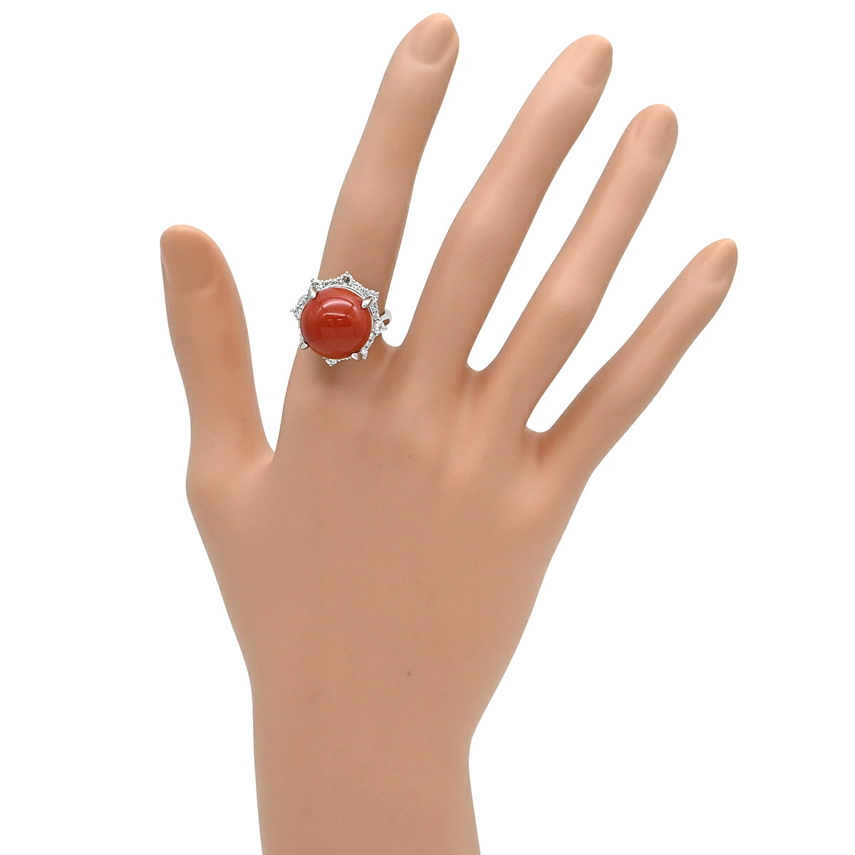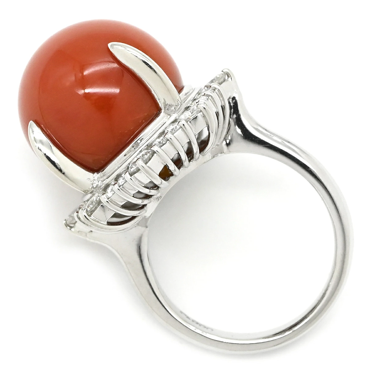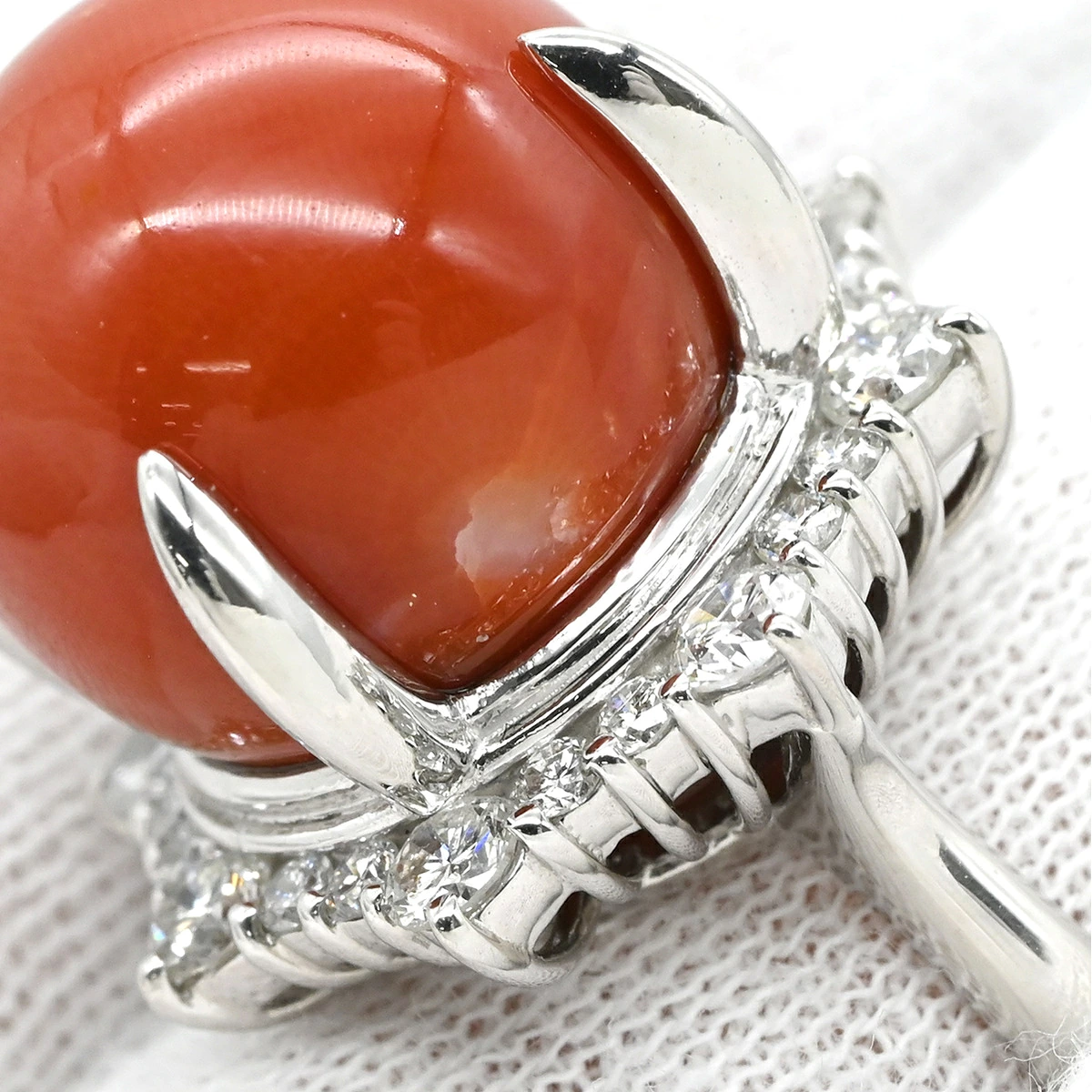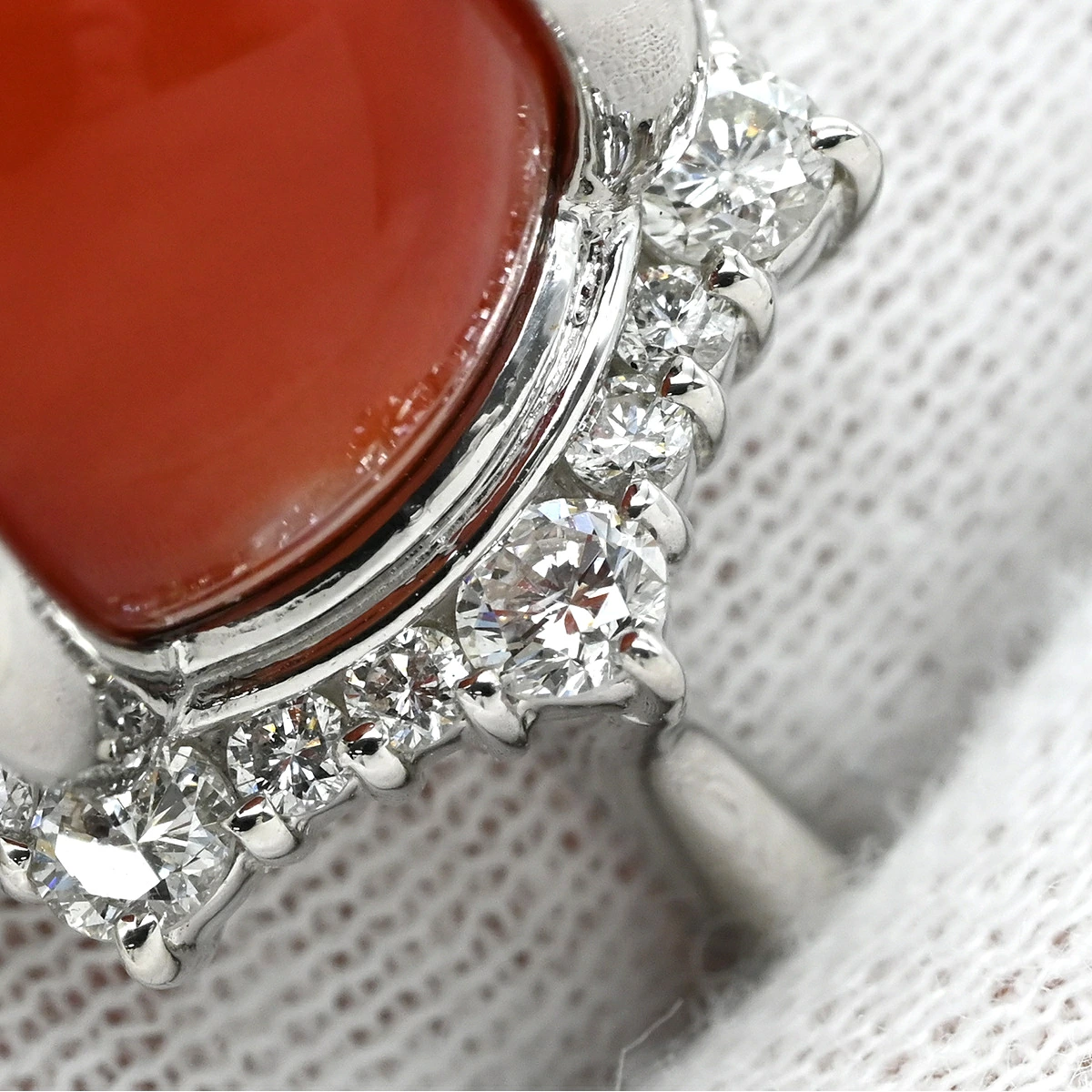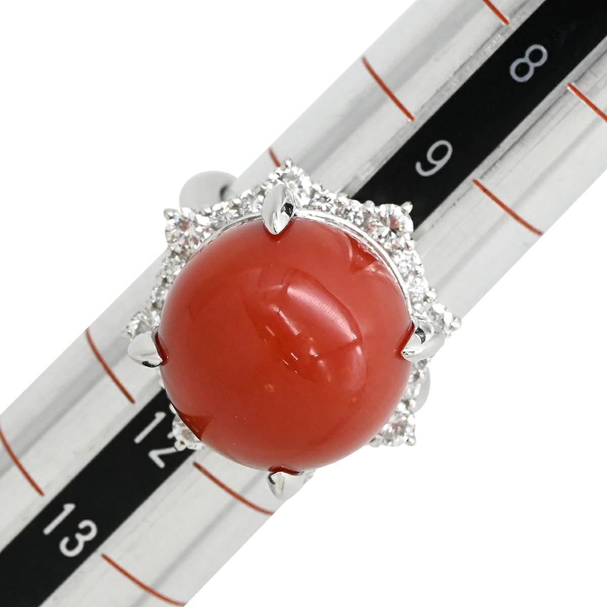 ノンブランド NON BRAND リング 指輪 珊瑚 ダイヤリング Pt900 珊瑚 プラチナシルバー 赤 サンゴ 10.5号 レディース定番 人気 美品 【中古】