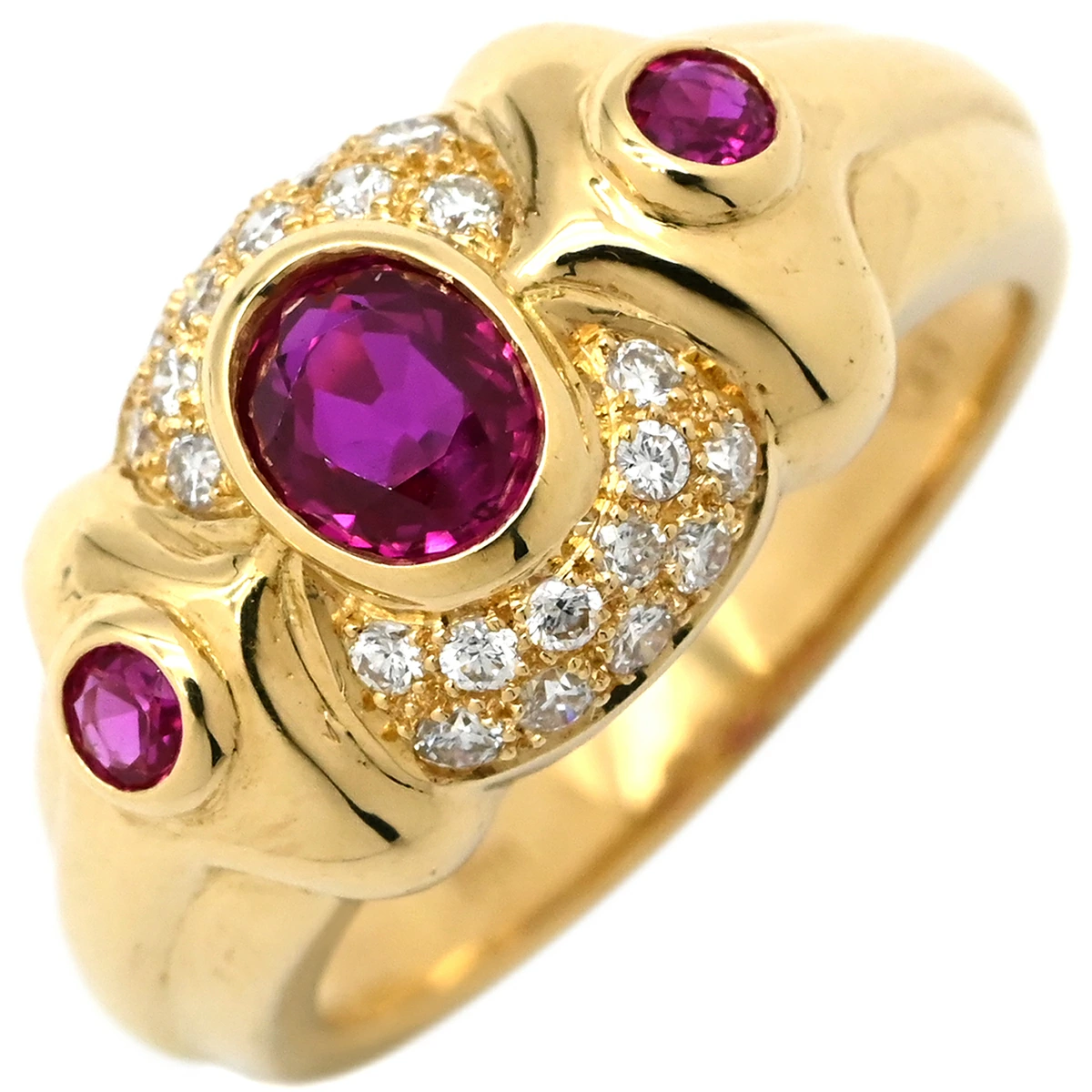 ノンブランド NON BRAND リング 指輪 ルビー ダイヤリング K18YG ルビー ダイヤモンド イエローゴールド レッド 赤 12号 レディース定番 人気 美品 【中古】