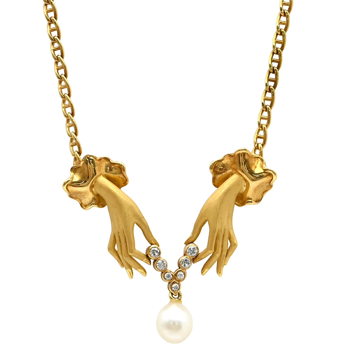カレライカレラ Carrera y Carrera ネックレス ハンドモチーフ K18YG ダイヤモンド パール イエローゴールド 18金 手モチーフ - レディース定番 人気 美品 【中古】
