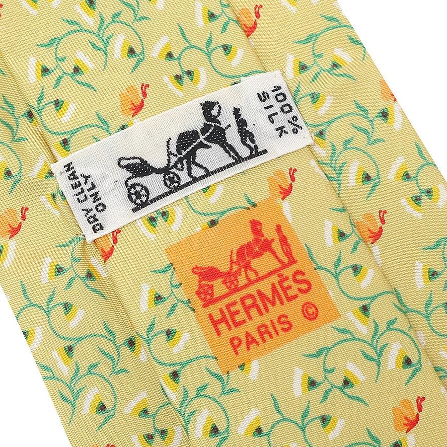 エルメス HERMES 植物柄 9cm ネクタイ シルク イエロー×グマルチカラー 黄色 花柄 - メンズ定番 人気 美品 【中古】