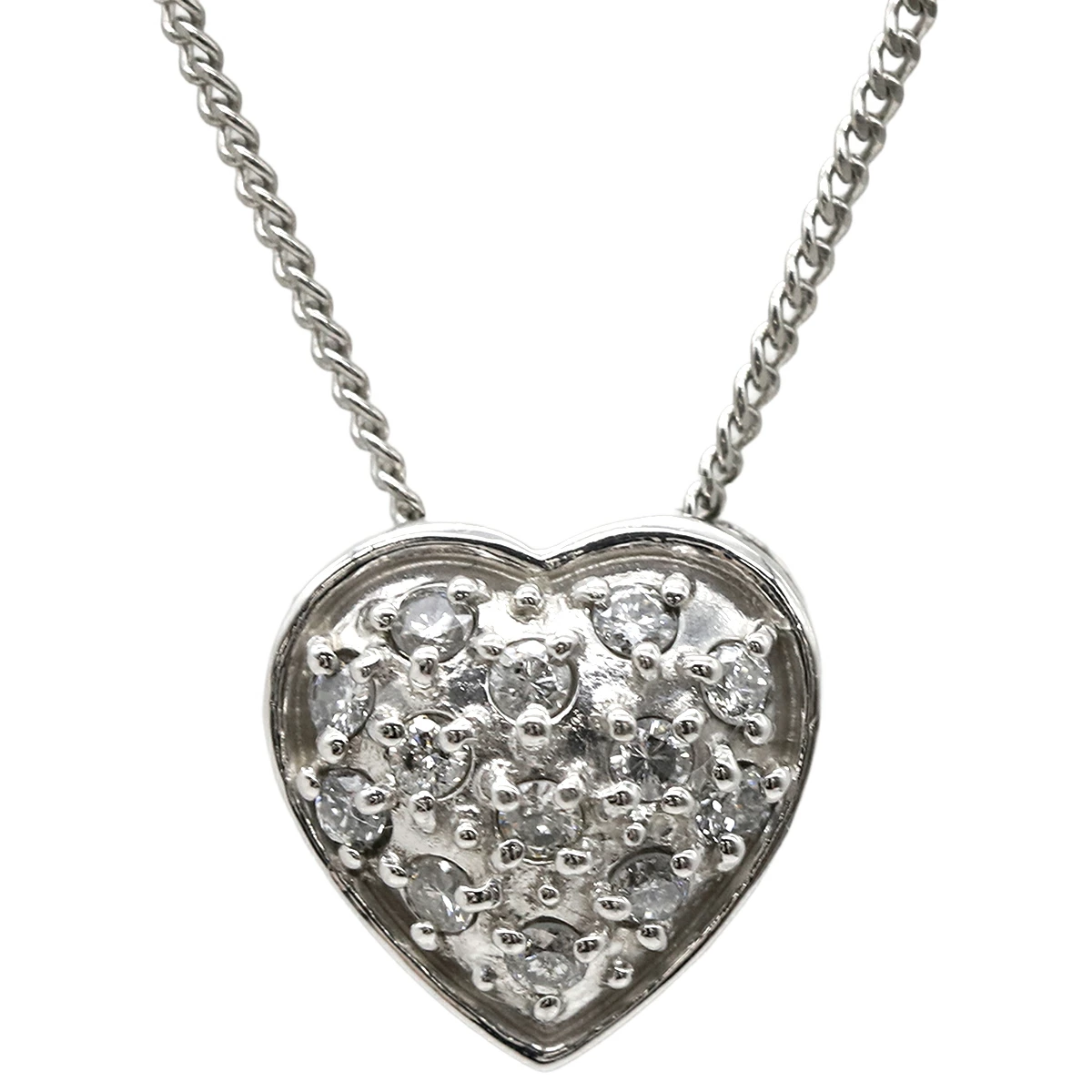 ノンブランド NON BRAND ネックレス Pt900 Pt850 ダイヤモンド プラチナシルバー Pt900×Pt850 コンビ ハート ダイヤ ペンダント - レディース定番 人気 美品 【中古】