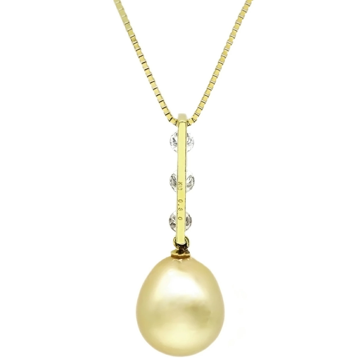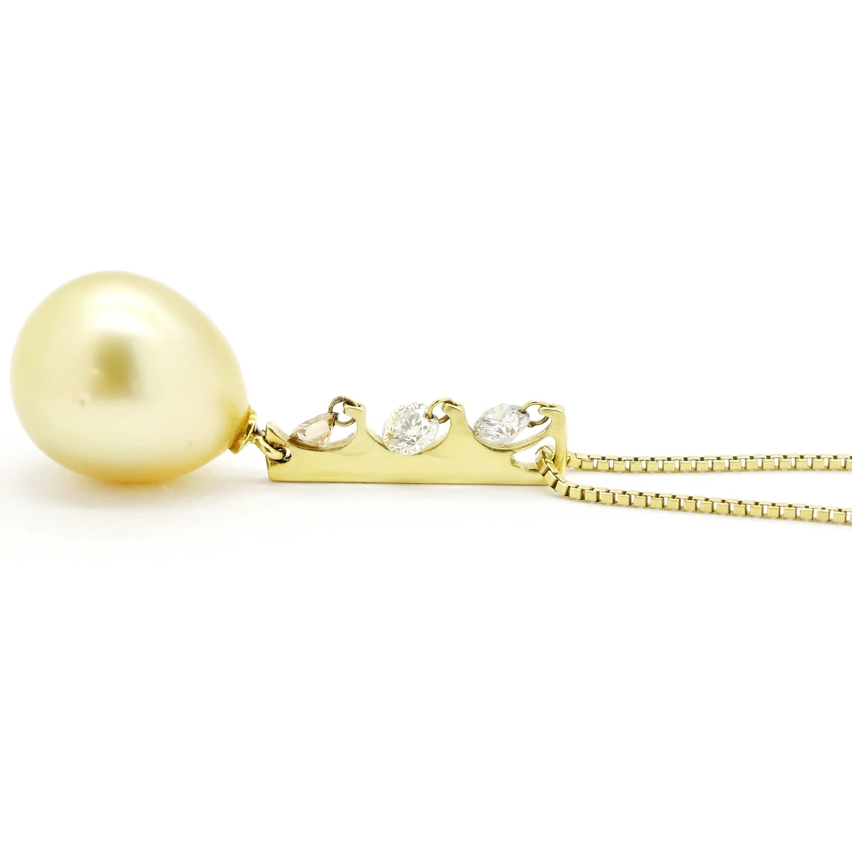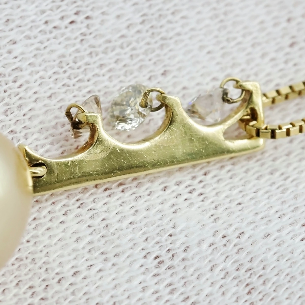 ノンブランド NON BRAND ネックレス パール ダイヤ ネックレス K18YG パール ダイヤモンド イエローゴールド 真珠 スイング 3連 ダイヤモンド イエローゴールド ハート - レディース定番 人気 美品 【中古】
