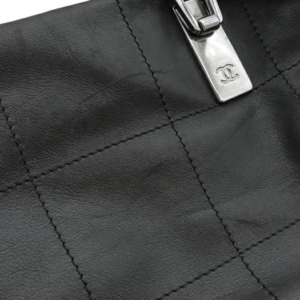 ▲クリックで拡大されますシャネル CHANEL ハンドバッグ チョコバー レザー ブラック 黒 ボストン シルバー金具 91***** - レディース 【中古】