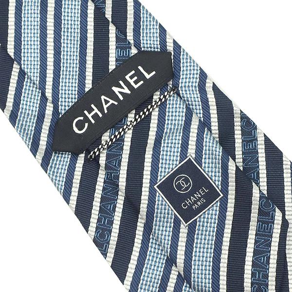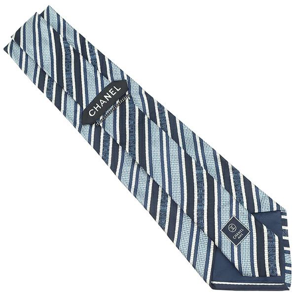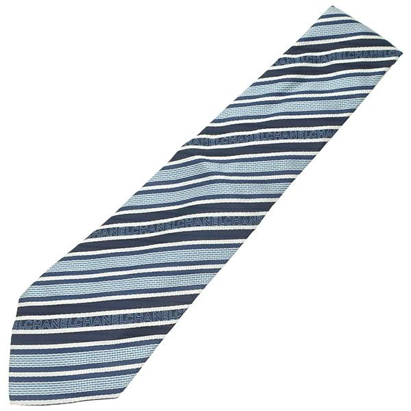 シャネル CHANEL ネクタイ CHANELロゴ 10cm シルク ネイビー×ブルー 紺 青 斜線柄 ストライプ - メンズ定番 人気 美品 【中古】