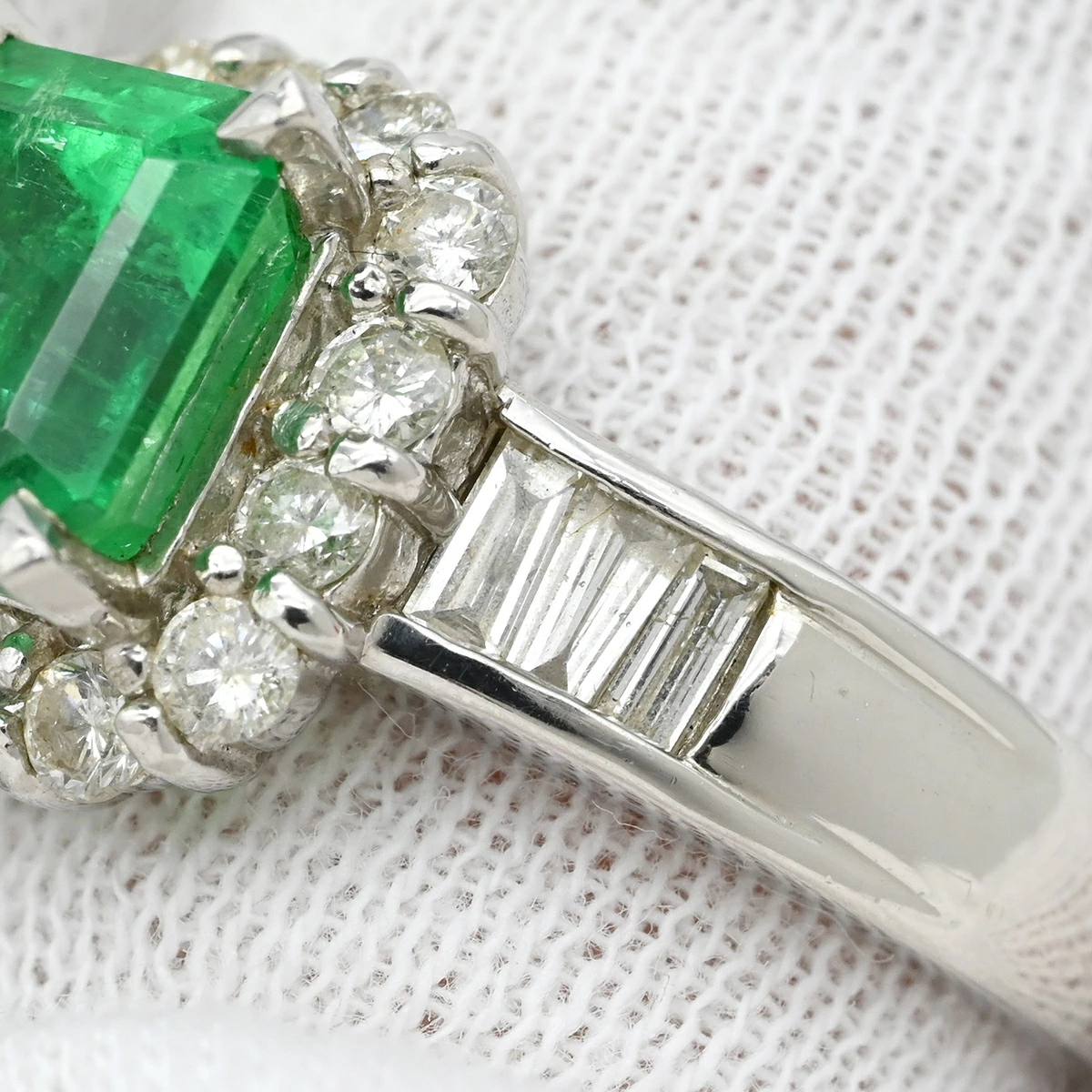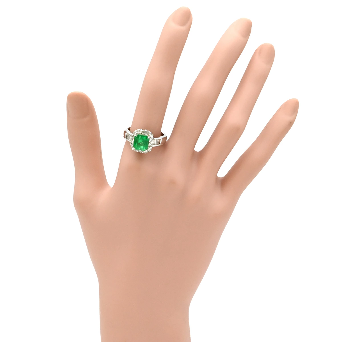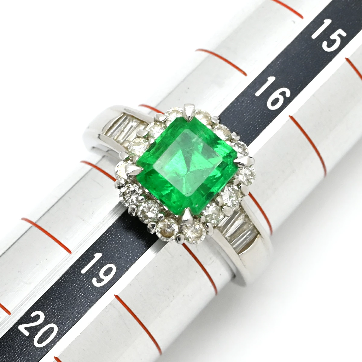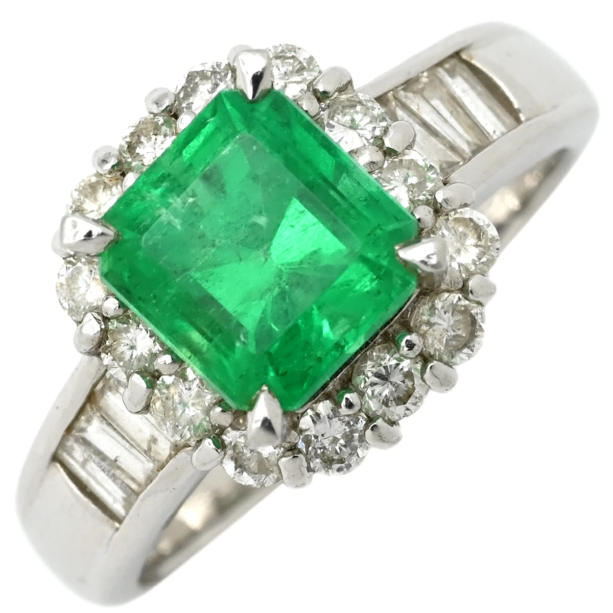 ノンブランド NON BRAND リング 指輪 エメラルド ダイヤモンド リング Pt900 エメラルド ダイヤモンド プラチナシルバー グリーン 緑 スクエア - 17.5号 メンズ 【中古】