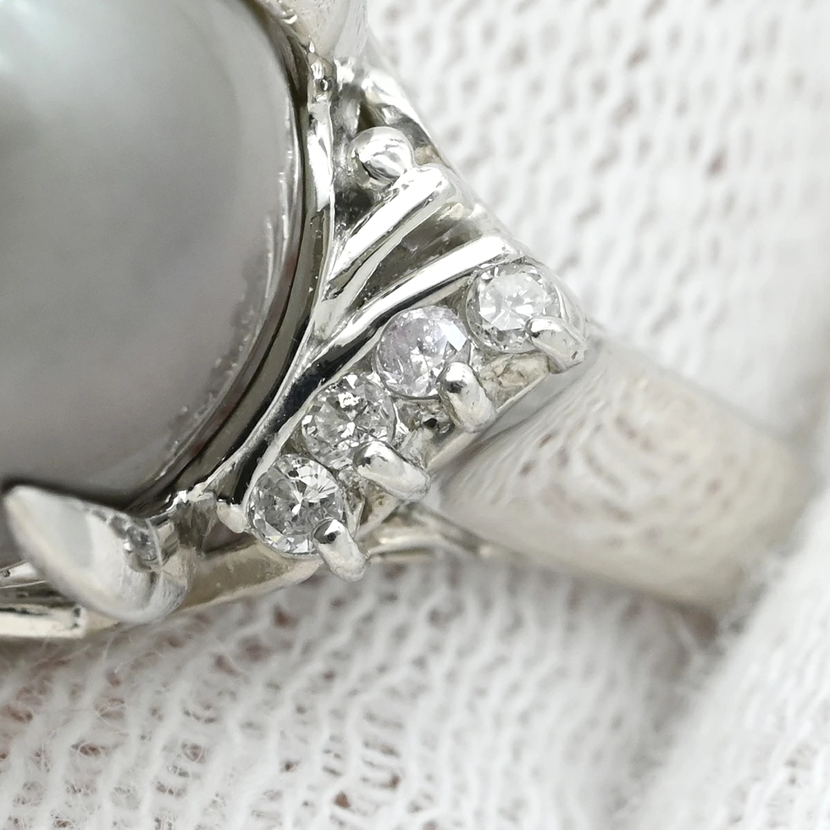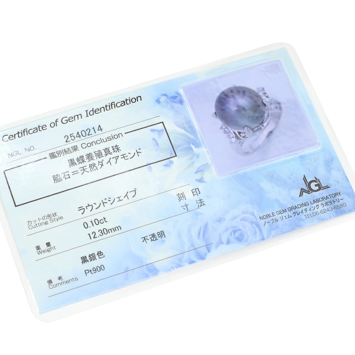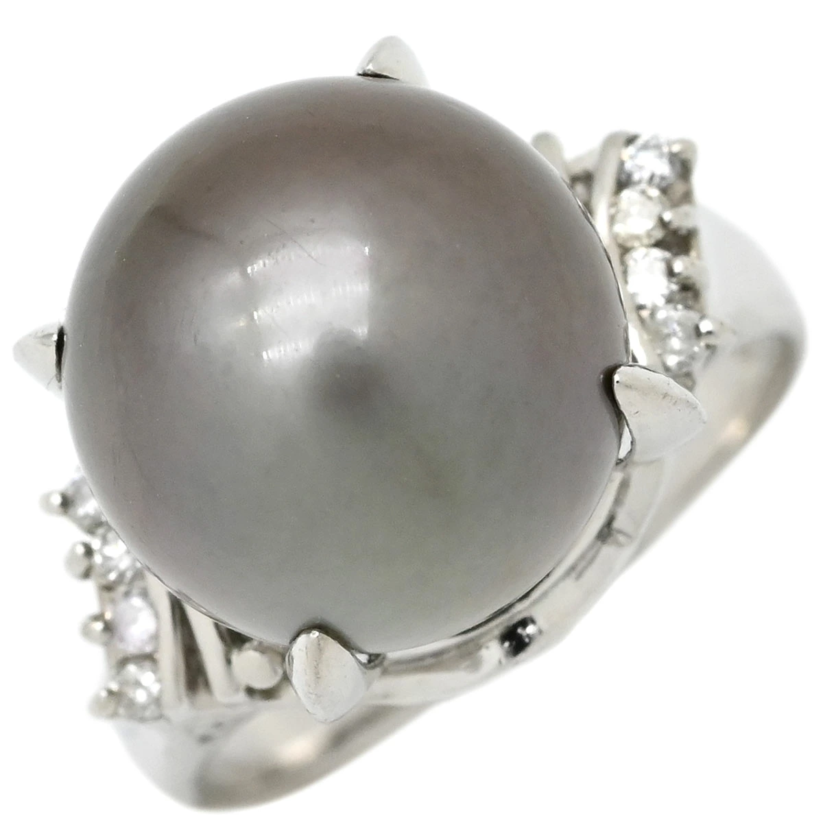 ノンブランド NON BRAND リング 指輪 黒蝶パール ダイヤリング Pt900 パール ダイヤモンド プラチナシルバー 1粒 1P 12号 レディース定番 人気 美品 【中古】