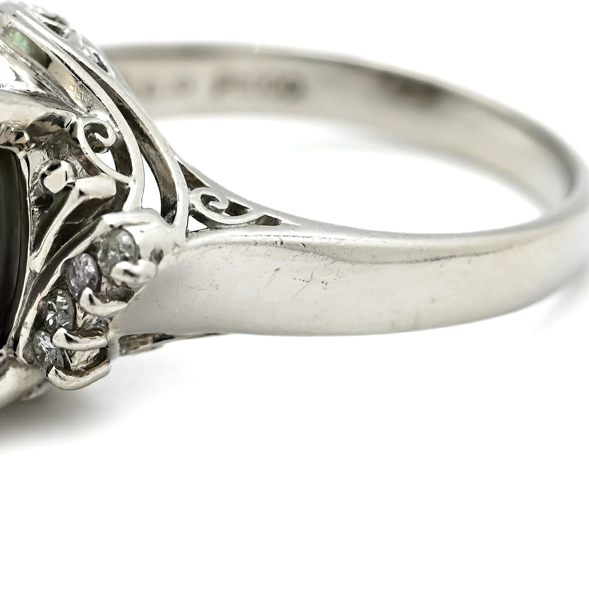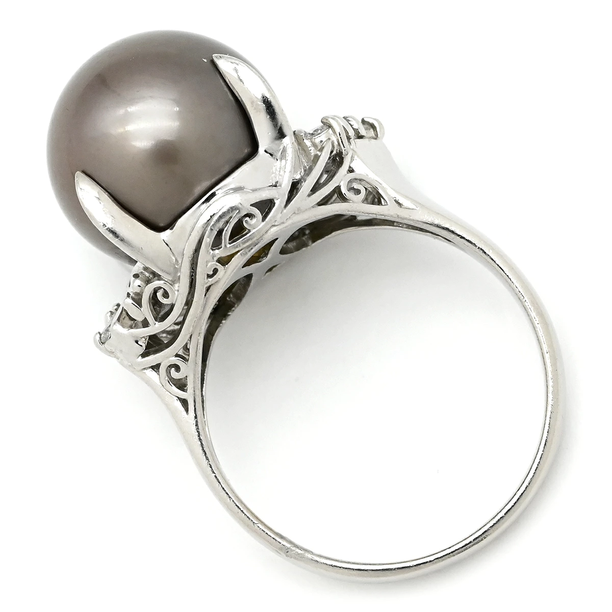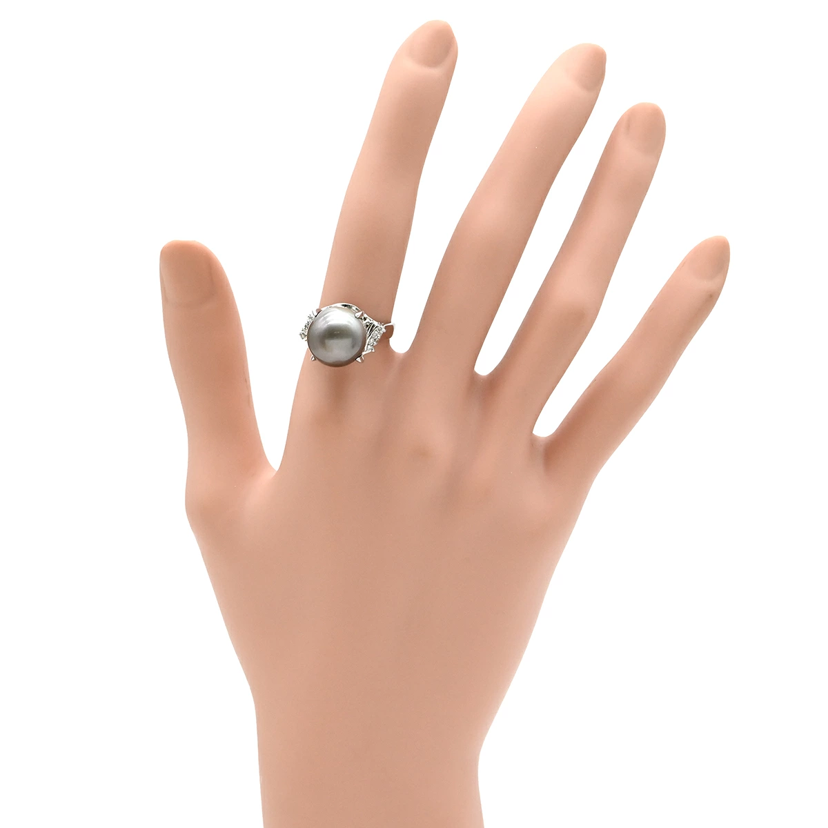 ノンブランド NON BRAND リング 指輪 黒蝶パール ダイヤリング Pt900 パール ダイヤモンド プラチナシルバー 1粒 1P 12号 レディース定番 人気 美品 【中古】