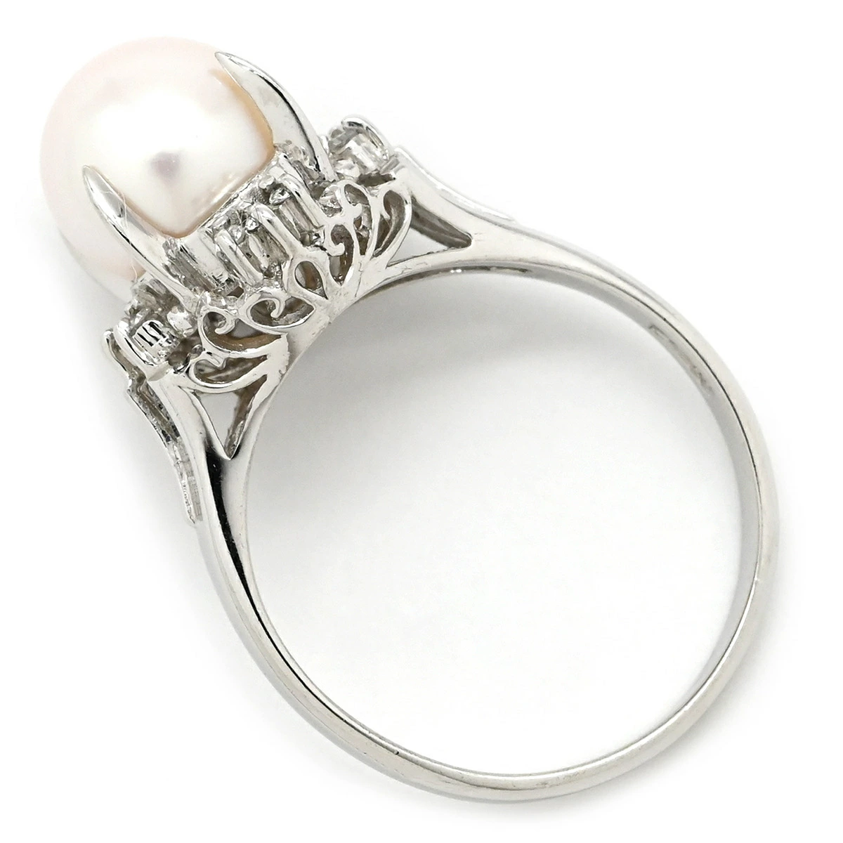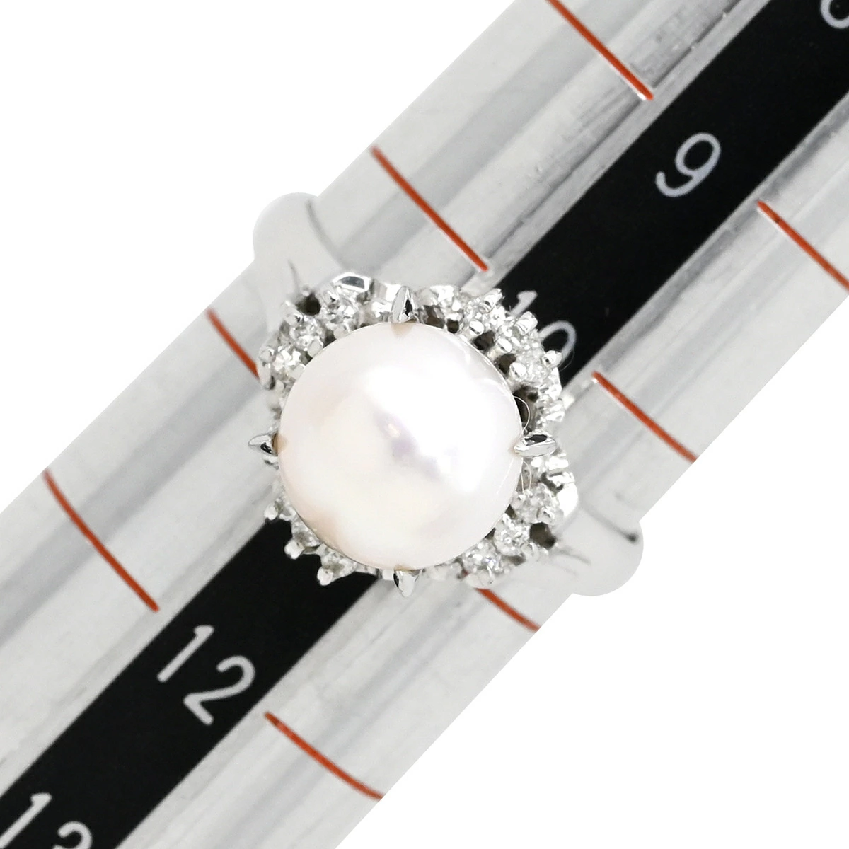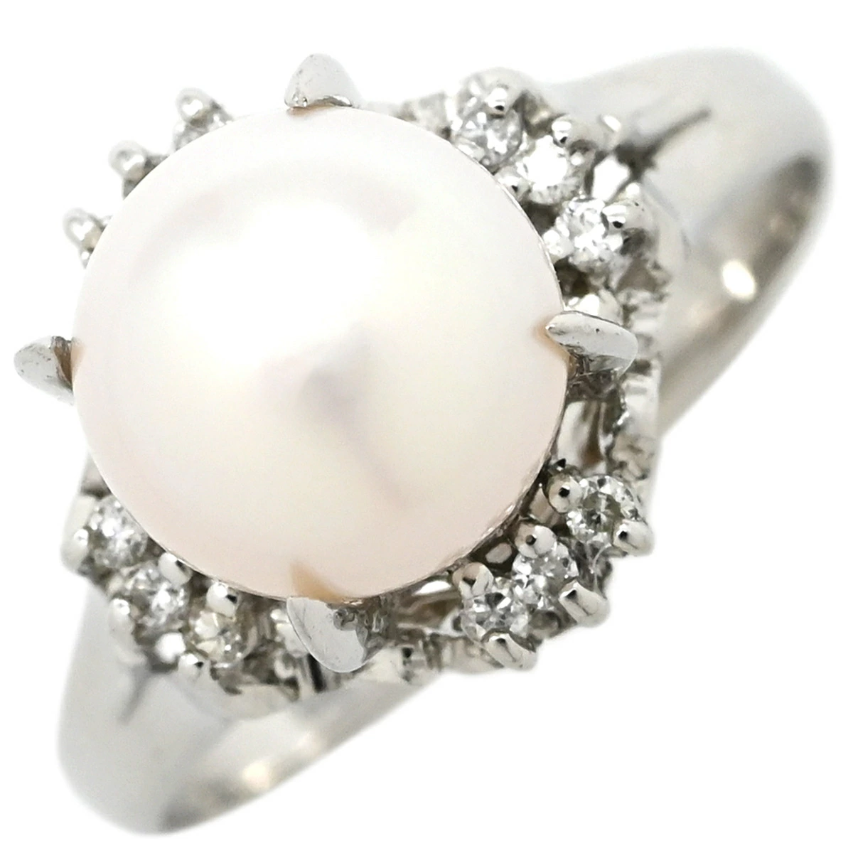 ノンブランド NON BRAND リング 指輪 パール ダイヤリング Pt900 パール ダイヤモンド プラチナシルバー 1粒 1P - 10.5号 レディース定番 人気 美品 【中古】