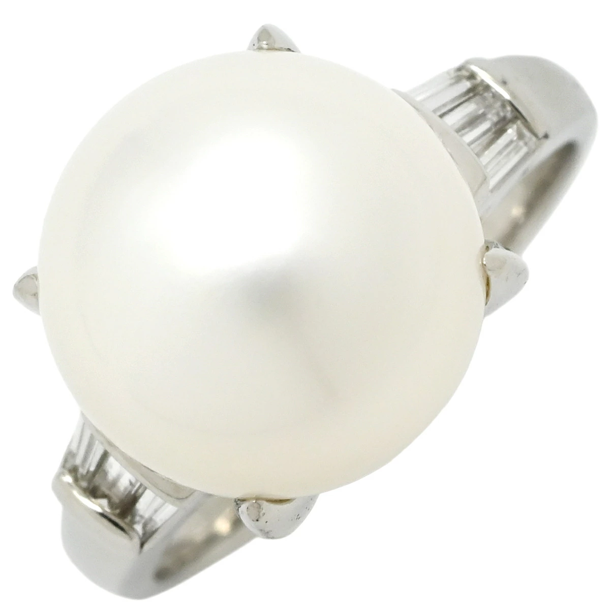 ノンブランド NON BRAND リング 指輪 白蝶パール ダイヤリング Pt900 パール ダイヤモンド プラチナシルバー 1粒 1P - 13号 メンズ レディース ユニセックス定番 人気 美品 【中古】