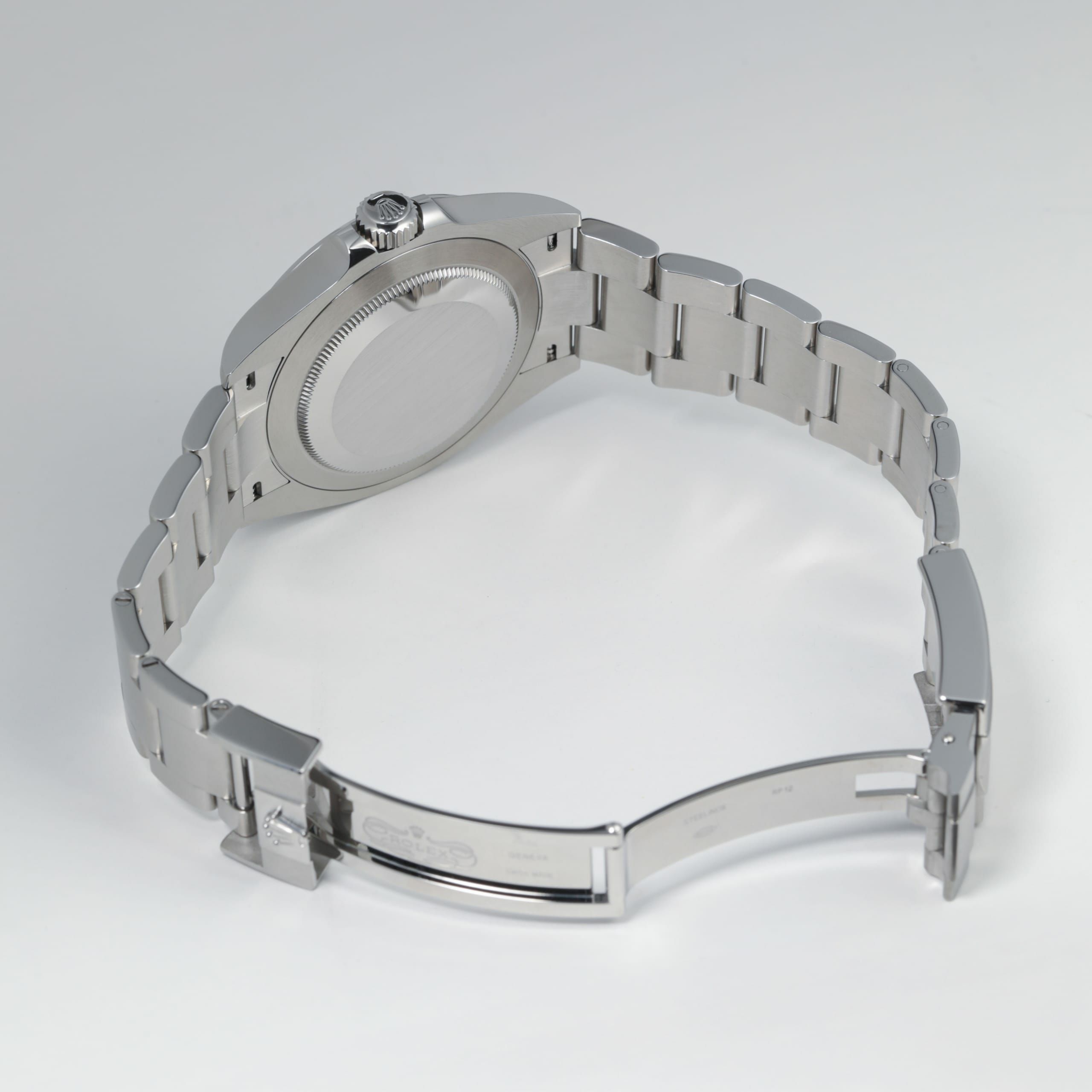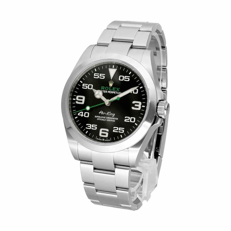 --------【商品スペック】--------お問合せコード:126900ブランド:ロレックスシリーズ:エアキングケース素材:ステンレススチールベルト素材:ステンレススチールダイアルカラー:ブラックムーブメント:自動巻(Cal.3230)ケースサイズ:40mm(リューズ除く)防水:100mガラス:サファイアガラス仕様:3針付属品:純正BOX、国際保証書(2024年5月)保証:当店購入日より1年保証メーカー参考価格:¥1,135,200-税込状態:数回使用による線傷が僅かにありますが、非常に状態の良い個体です。(中古Aランク)「ロレックス エアキング 126900 ~スタイリッシュに進化した2022年最新モデル~」2022年に発表されたロレックス「エアキング 126900」は、リューズガードが新たに採用され、より洗練されたスタイリッシュなデザインに進化しました。特に、5分位置の表記が「5」から「05」に変更され、文字盤全体の視認性が向上。3.6.9以外は、すべてが2桁表記となり、バランスの取れた美しい仕上がりが魅力です。