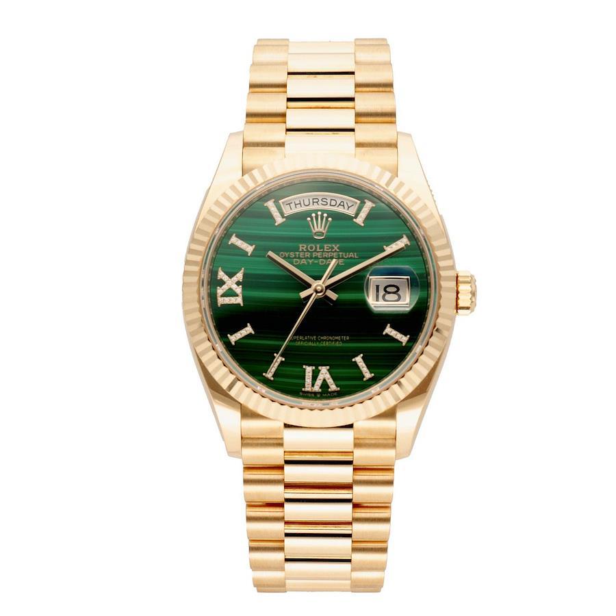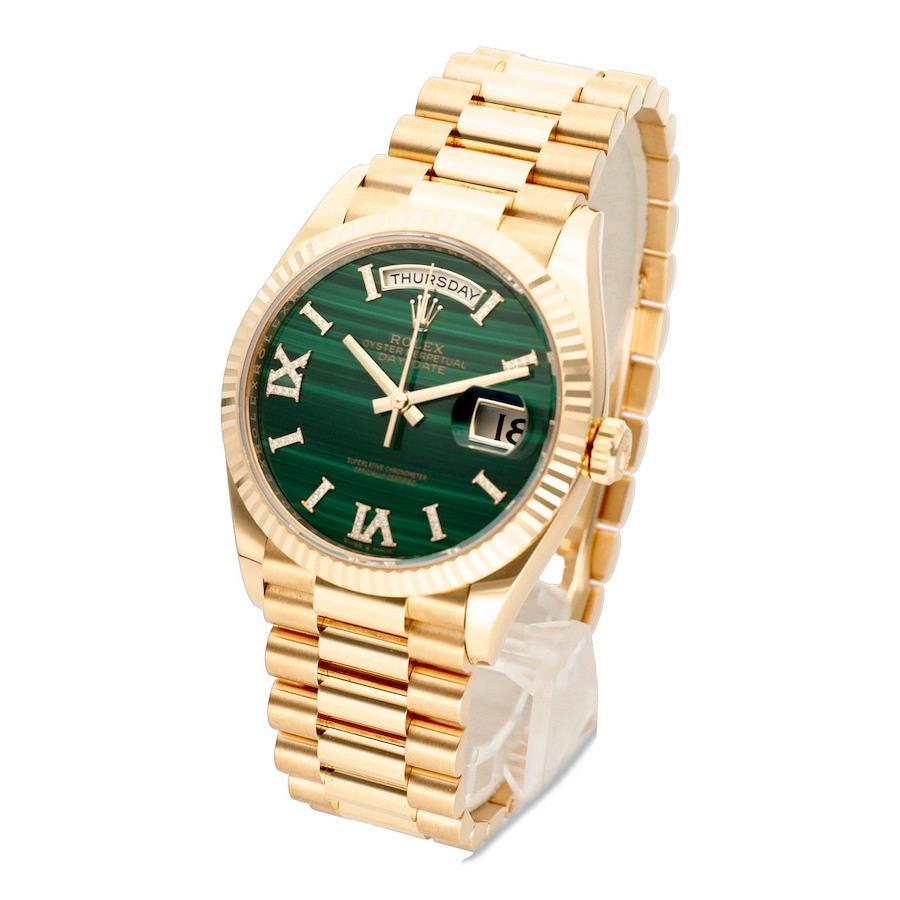 --------【商品スペック】--------お問合せコード:128238ブランド:ロレックスシリーズ:デイデイト36ケース素材:イエローゴールドベルト素材:イエローゴールドダイアルカラー:シャンパンムーブメント:自動巻(Cal.3255)ケースサイズ:36mm(リューズ除く)防水:100mガラス:サファイアガラス仕様:日付曜日表示付属品:純正BOX、国際保証書(2021年8月)保証:購入日より1年保証状態:全体的に薄い使用傷があります。