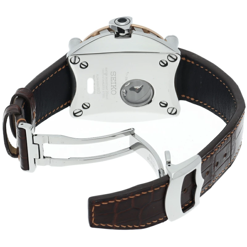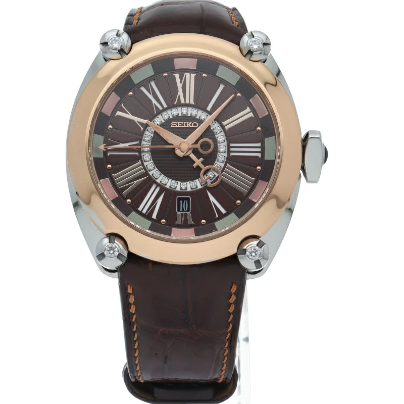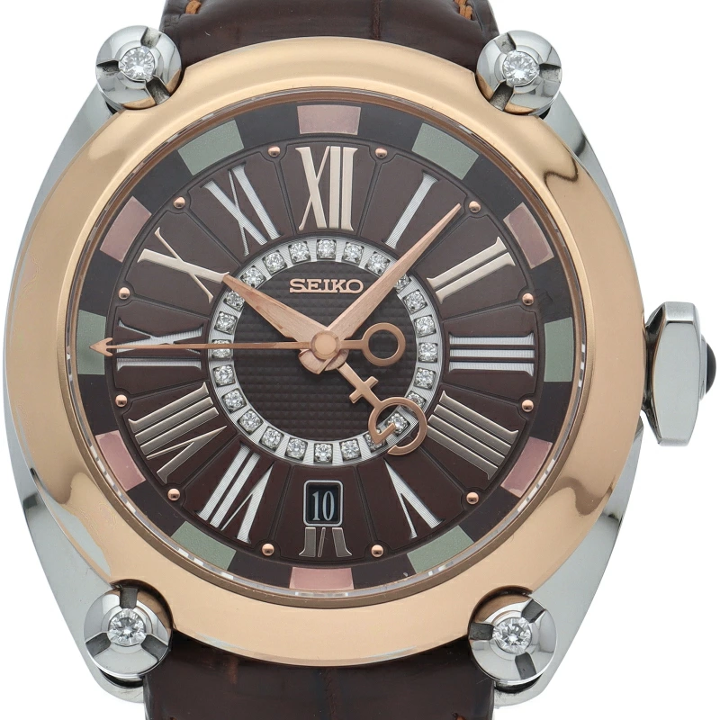 | 機械式時計の複雑な仕組みとクォーツの高精度を兼ね揃えたセイコー独自の次世代キャリバー“自動巻きスプリングドライブ”を搭載したモデルです。新たなデザインとテクノロジーの融合GALANTE〈ガランテ〉は、イタリア語で「女性に対して紳士的に振る舞う」、「女性の気を惹く」という意味を持っており、男性だけでなく女性をも魅了するプレミアムウォッチブランドへの思いを込めてデザインされています。 |