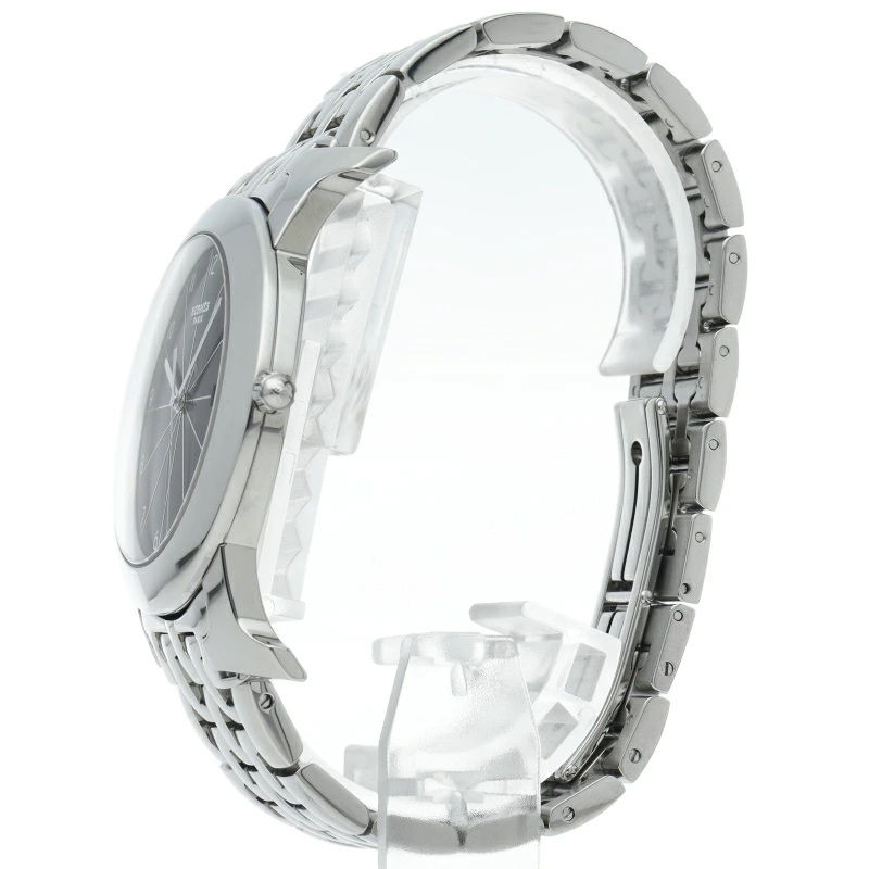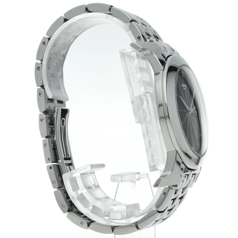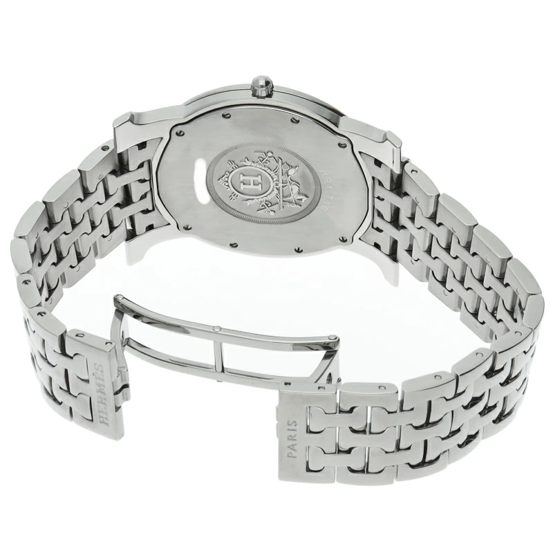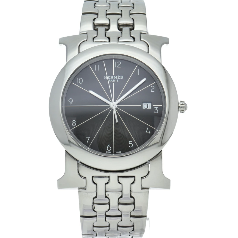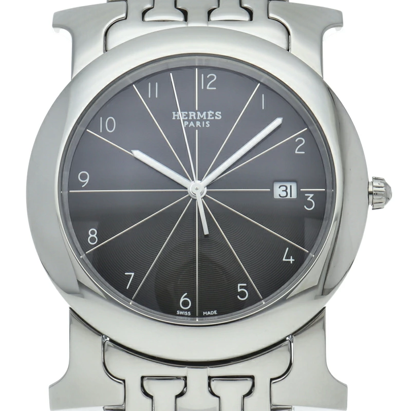 | エルメス「Hウォッチ ロンド」。ブランドを象徴する「H」モチーフに丸みを持たせた、上品で柔らかいフォルムが魅力のメンズ向けクォーツモデルです。美しいギョーシェ文字盤と上質なレザーベルトが手元に大人の気品を演出。ビジネスからカジュアルまで幅広く活躍し、中古市場でも高い人気を誇るおすすめの逸品です。 |