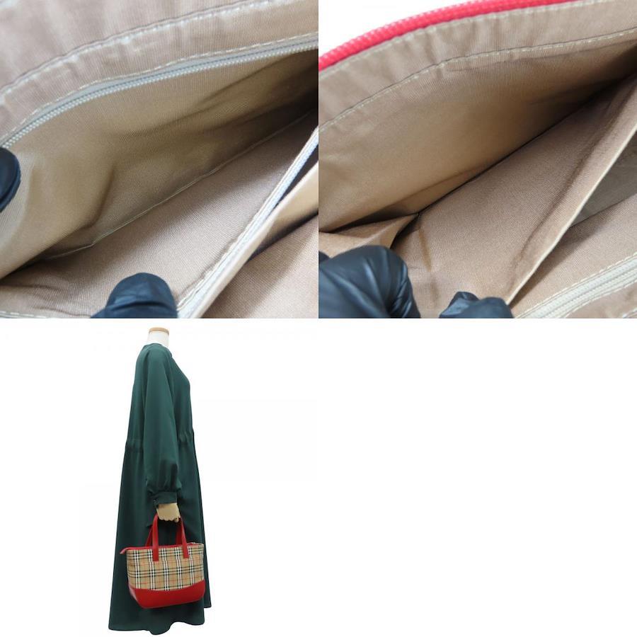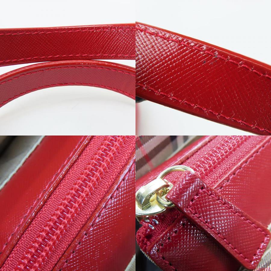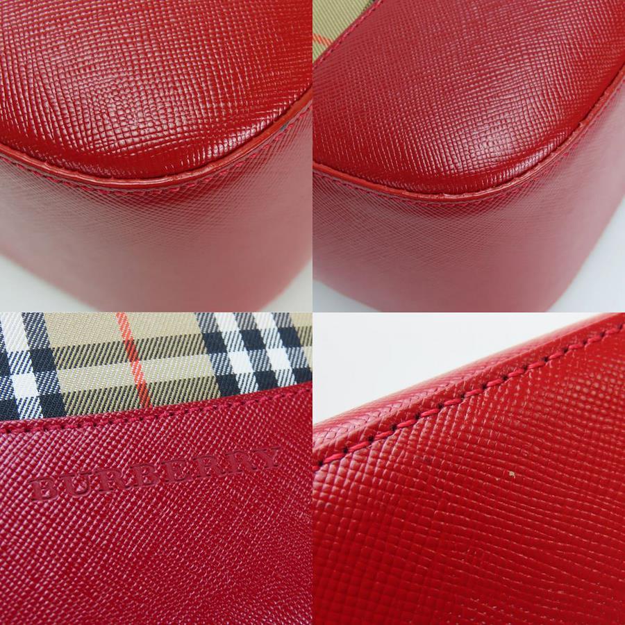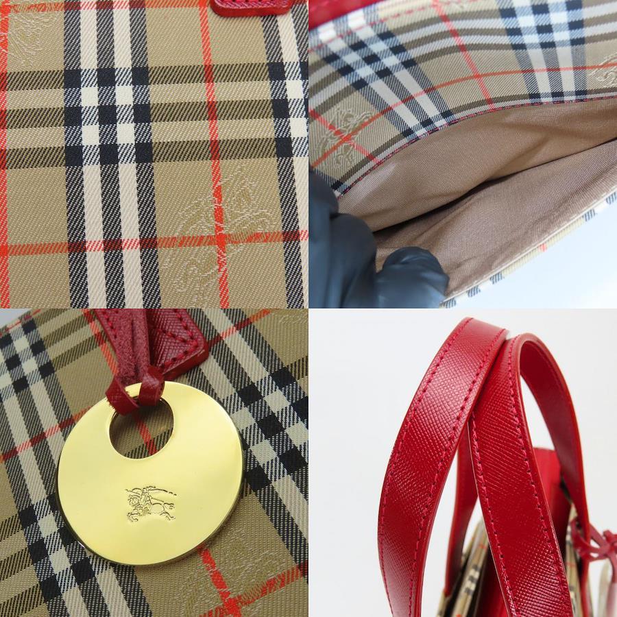 品名:【中古】 バーバリー ハンドバッグ ノバチェック キャンバス レザー レッド ベージュ チャーム付き ミニバッグ レディース 女性 BURBERRY