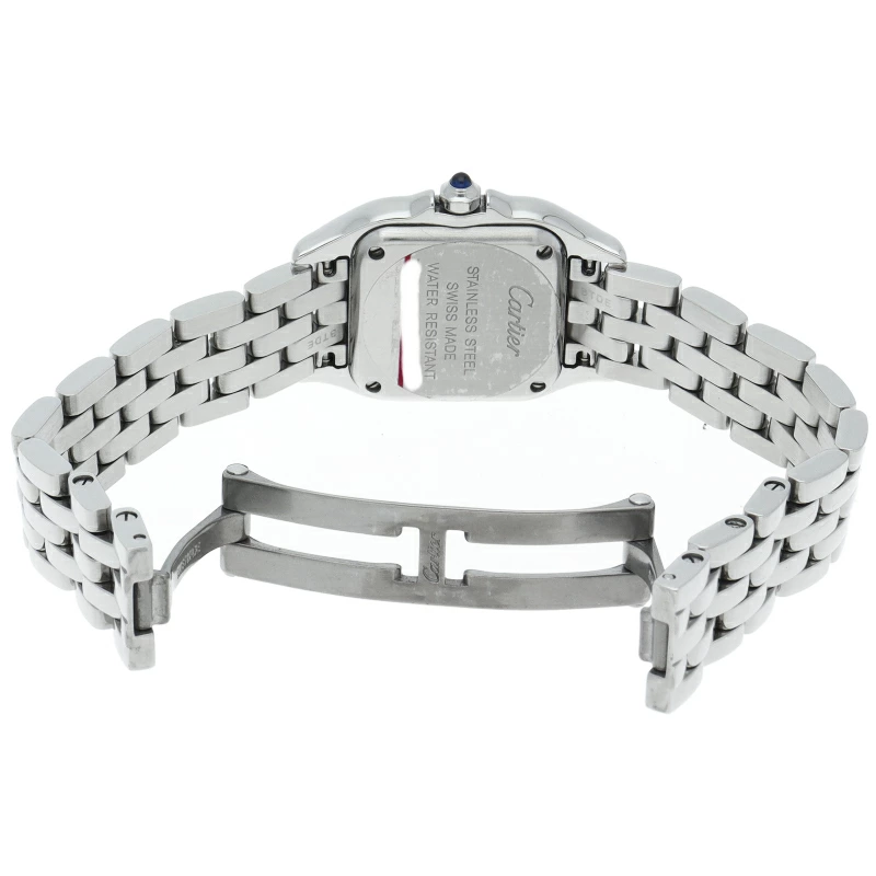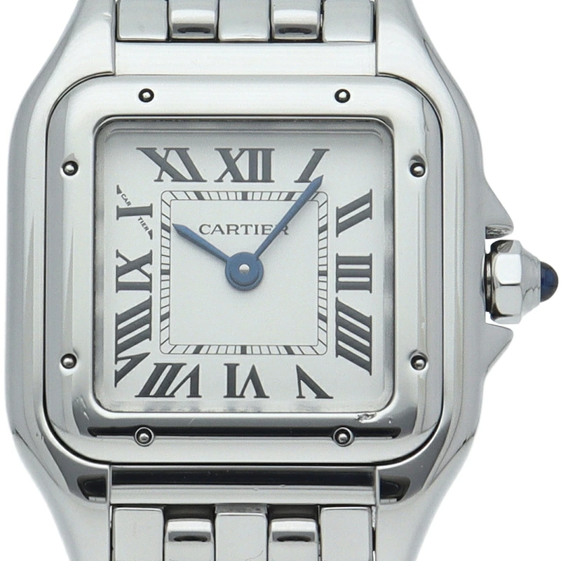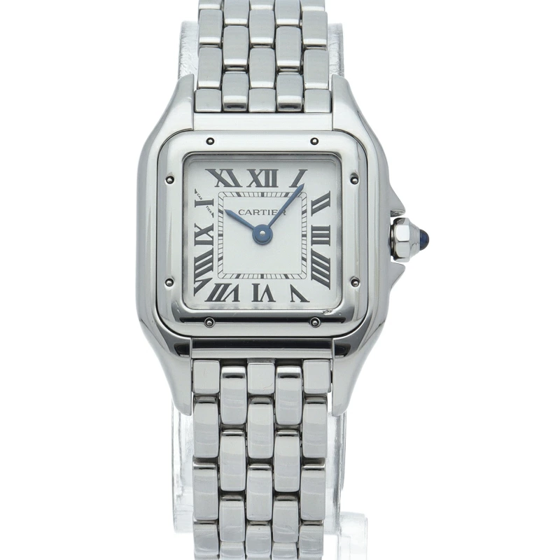 | カルティエ「パンテール ドゥ カルティエ」SM(WSPN0006)。80年代のアイコンが現代的に蘇った復刻モデルです。抜群のフィット感を誇るしなやかなブレスレットは、まるでジュエリーのような着け心地。鏡面仕上げのステンレスとスクエアケースが洗練された輝きを放ち、女性の手元を優美に演出する永久定番です。 |