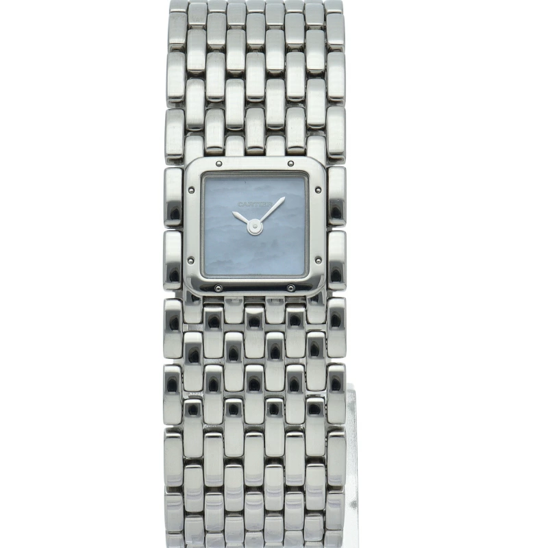 | カルティエのブレスレット感覚で着用できる「リュバン」。文字盤にはシェルが使用されて高級感溢れる仕上がりが特徴です。 |