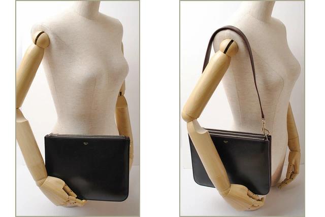 セリーヌショルダーバッグ/クラッチバッグ 17174 3OHA 38NO TRIO BAG/トリオ 2way ブラック CELINE