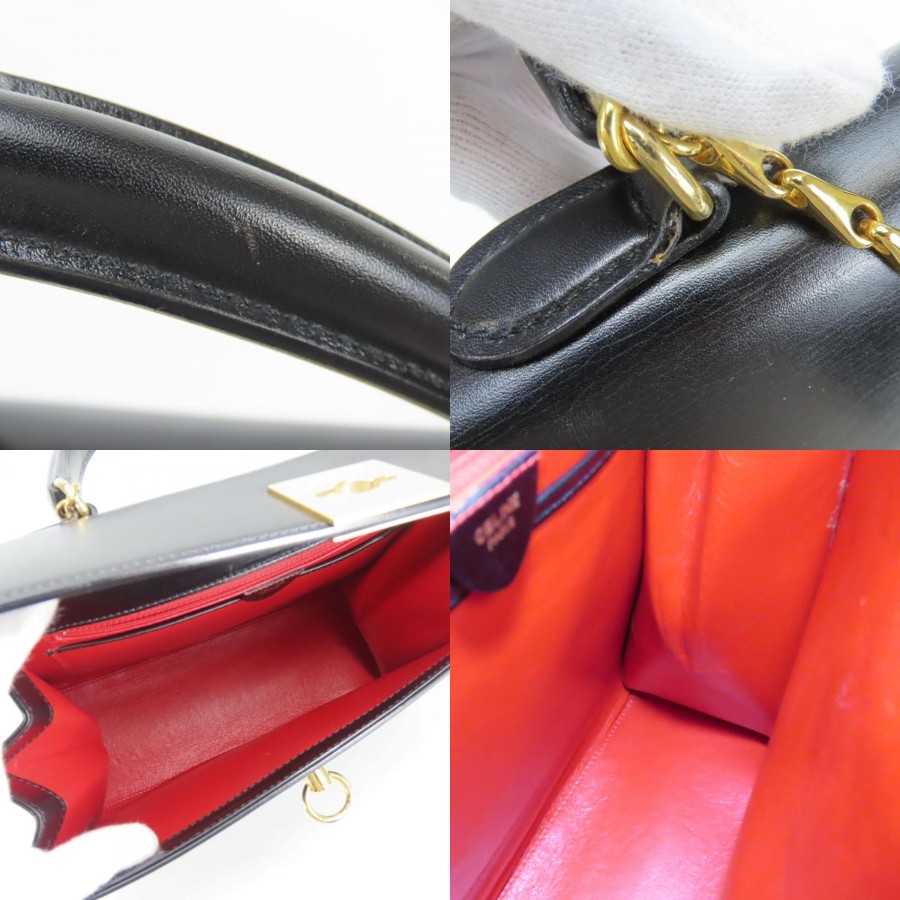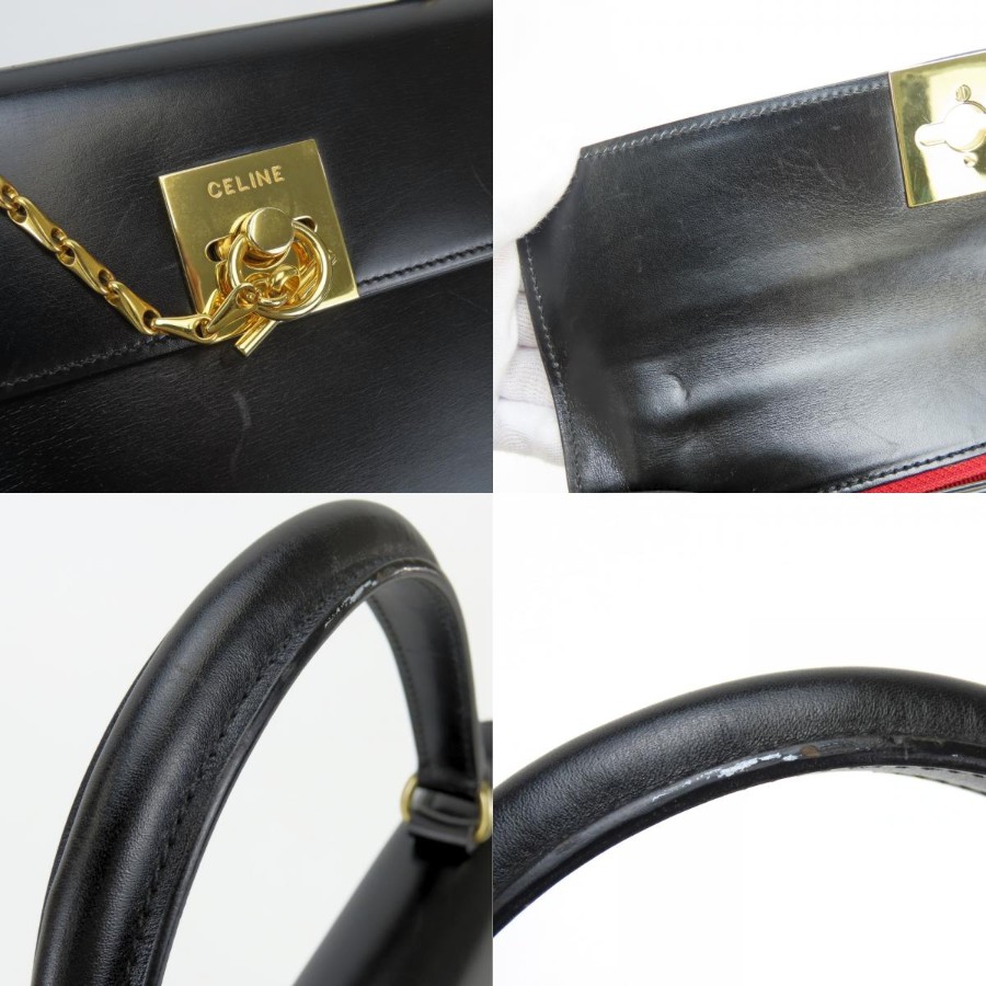 | 品名 | 【中古】 セリーヌ ハンドバッグ ガンチーニ レザー ブラック ゴールド金具 チェーン レディース 女性 CELINE |