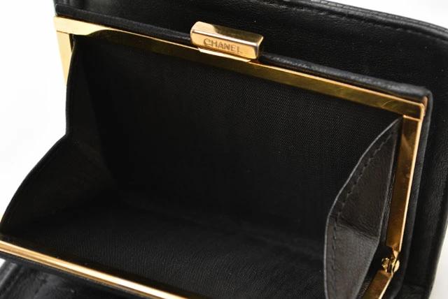 CHANEL がま口式 2折財布 キャビアスキン ココマーク/ブラック