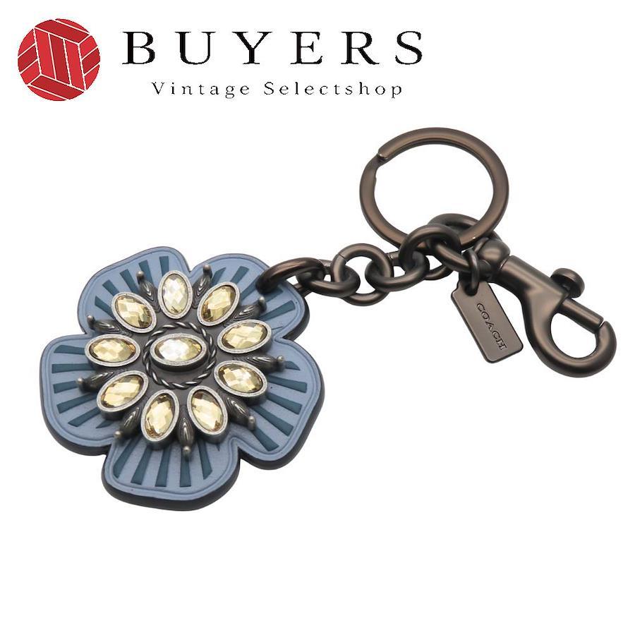 品名:【中古】 コーチ キーホルダー バッグチャーム ティーローズ レザー ラインストーン くすみブルー系 キーリング アクセサリー 小物 レディース 女性 COACH