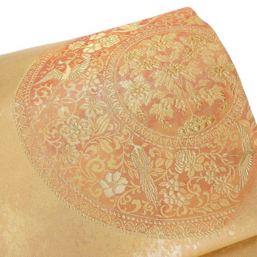 | 品名 | 【中古】袋帯 鏡裏文 金地 ゴールド イエロー オレンジ 引き箔 お太鼓柄 フォーマル用 正絹 シルク 呉服 着物 |