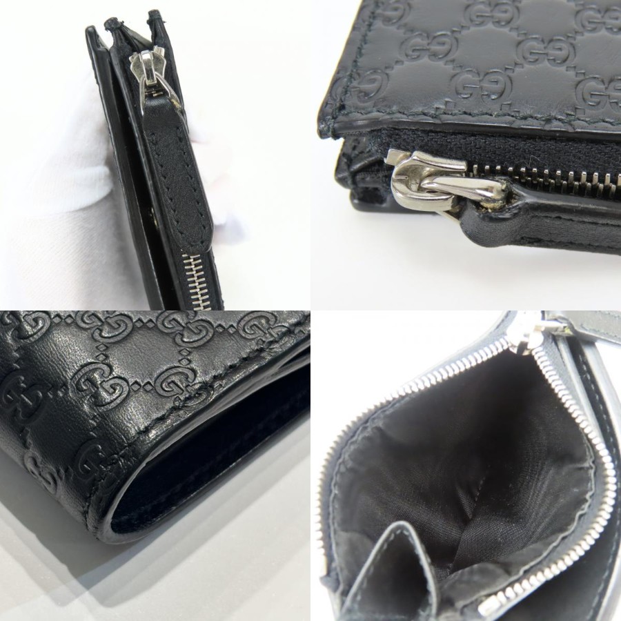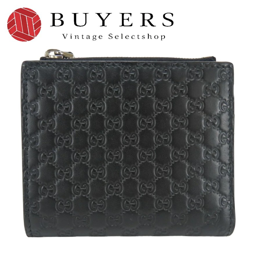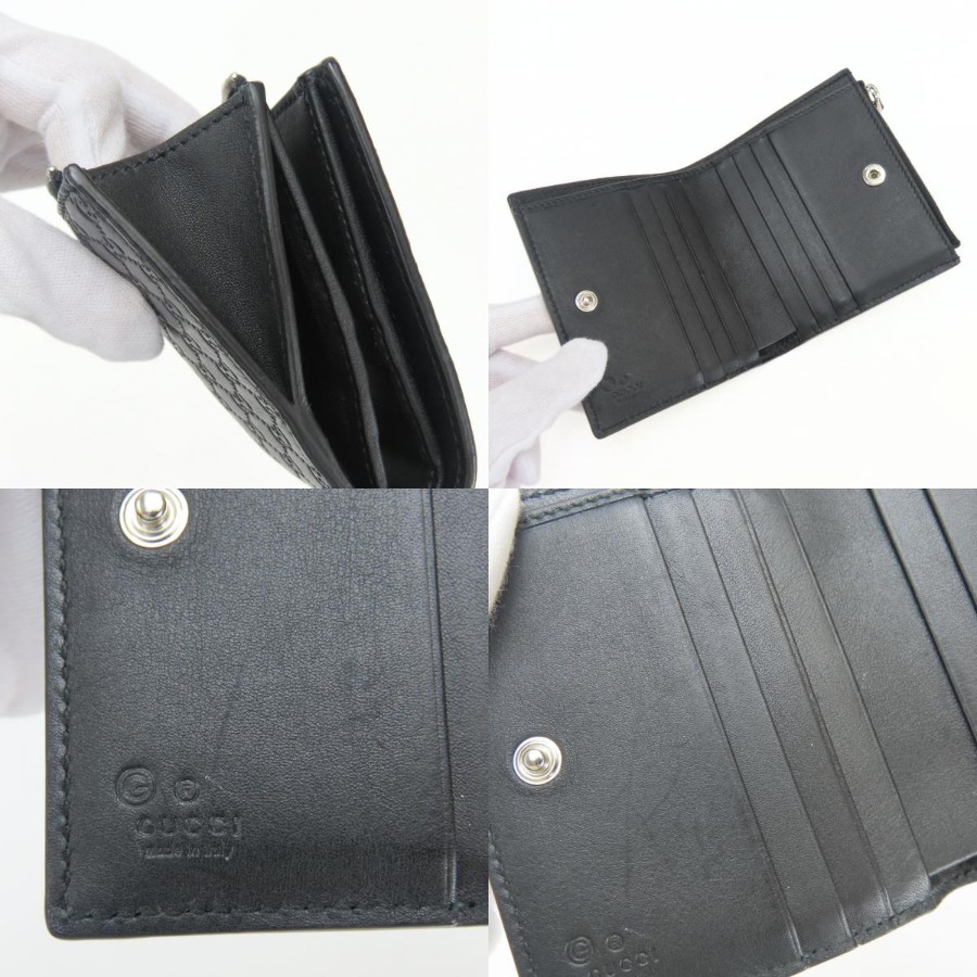 | 品名 | 【中古】 グッチ 二つ折り財布 マイクロGG 544475 シマレザー ブラック コンパクト 小物 レディース 女性 GUCCI |