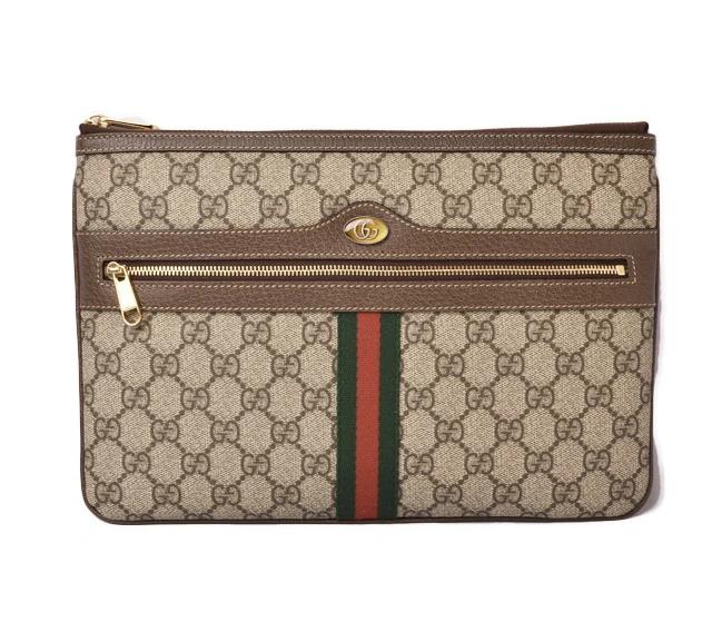 グッチより、クラッチバッグです。1970年代を思わせるレトロな雰囲気を残しつつ、ヴィンテージ加工を施したデザイン。水や汚れに強いコーティングキャンバス。開閉部は、ファスナー式となっており、貴重品は、安心して収納できる設計に。カジュアルな服装にも合わせやすいキャンバス柄。普段使いにも最適なサイズです!