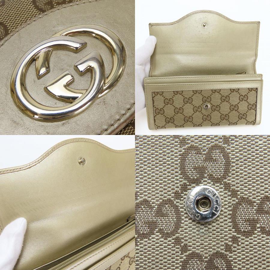 品名:【中古】 グッチ 長財布(かぶせ蓋) 282434 インターロッキング GGキャンバス レザー ブラウン ベージュ 小物 二つ折り レディース 女性 GUCCI