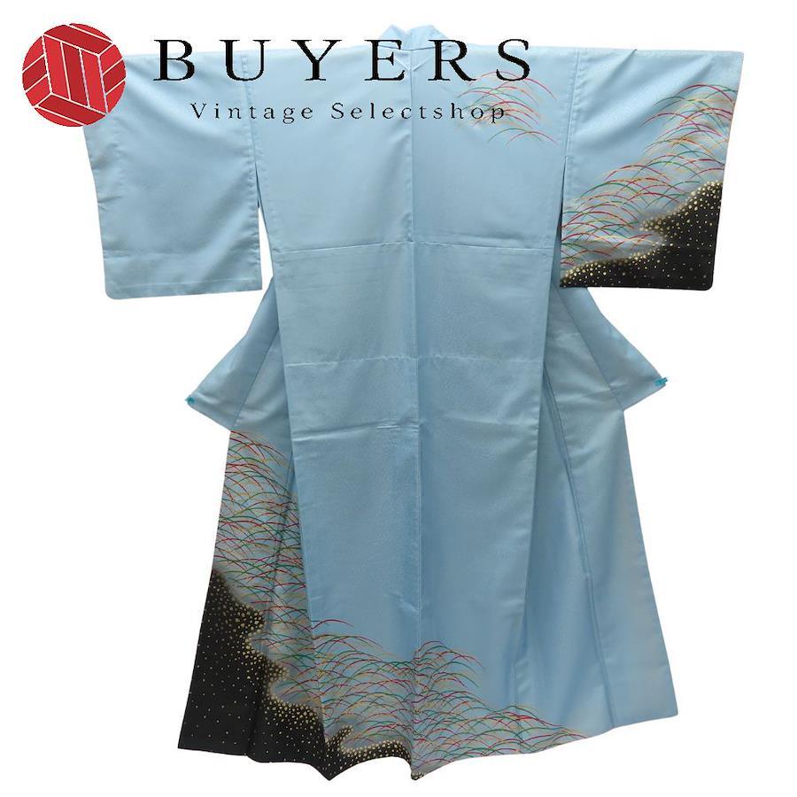品名【中古】 訪問着・付下 踊り衣装 化学繊維 水色 黒 胴抜き レディース 女性