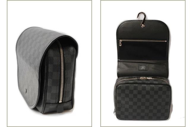 ルイヴィトンより、メンズに人気のダミエ グラフィットです。シックなデザインで、大人気のダミエ・グラフィット!旅行などで必要な洗面・ケア用品等をすっきりと収納することができます。蓋裏のフックは旅先での使用に重宝します。