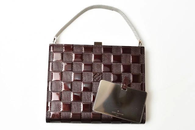 ルイヴィトンより、アクセサリーポーチ/イブニングバッグです。2000年に発表された廃盤ライン。高級感の漂うパテントレザー素材。ダミエ柄を斬新にコーティングした艶感のあるダミエヴェルニシリーズです。パーティや、二次会、結婚式にもおすすめ!